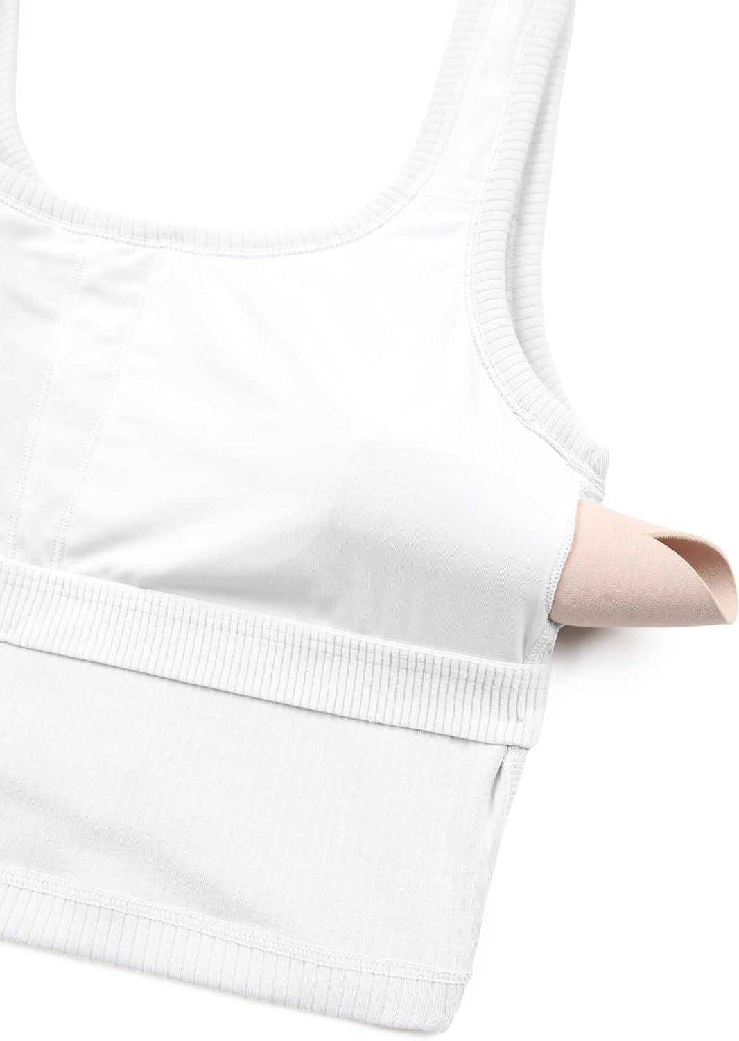 CRZ YOGA Ribbed Scoop Neck Crop Tank Tops for Women – Padded Longline Sports Bras Yoga Workout Cami(White)