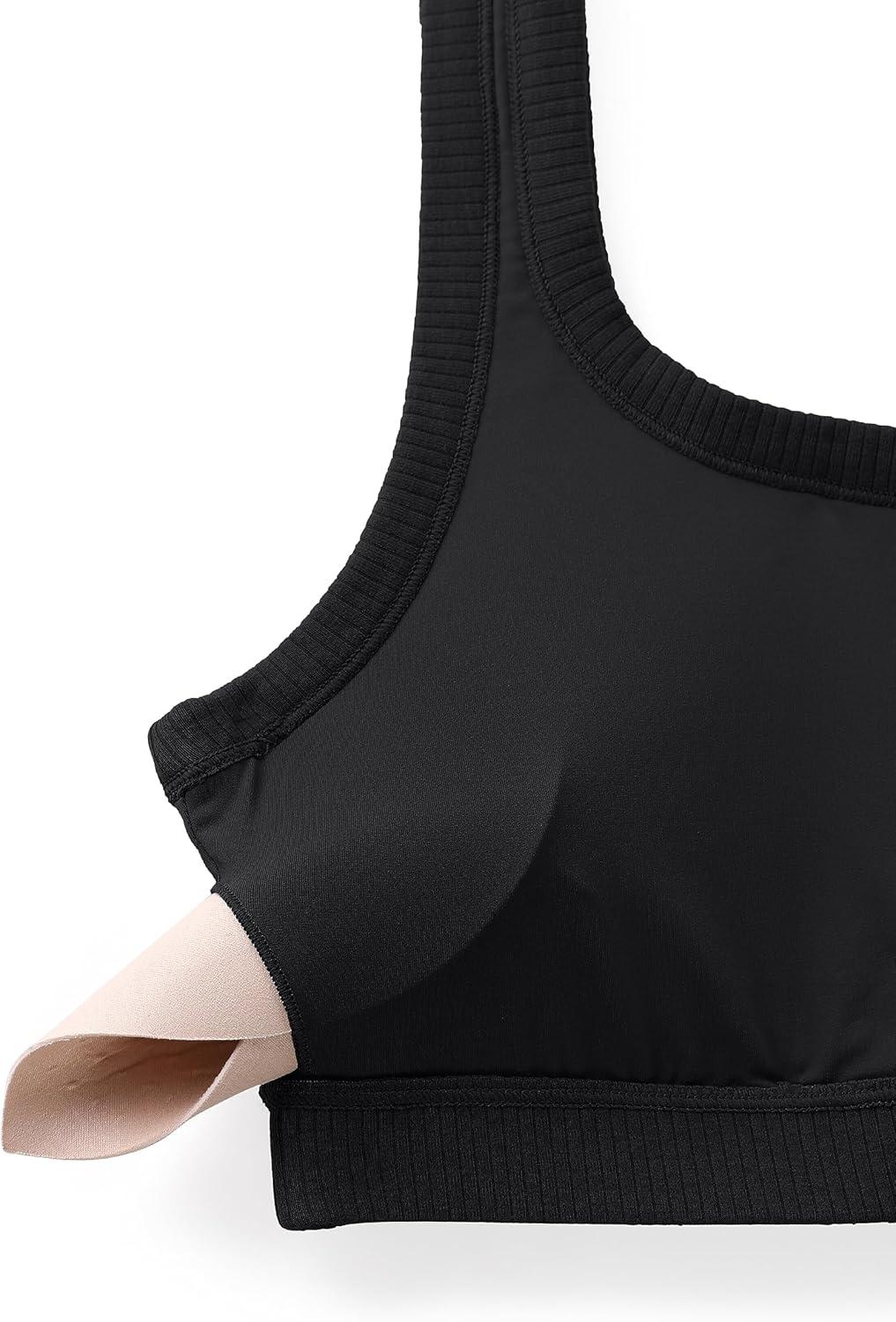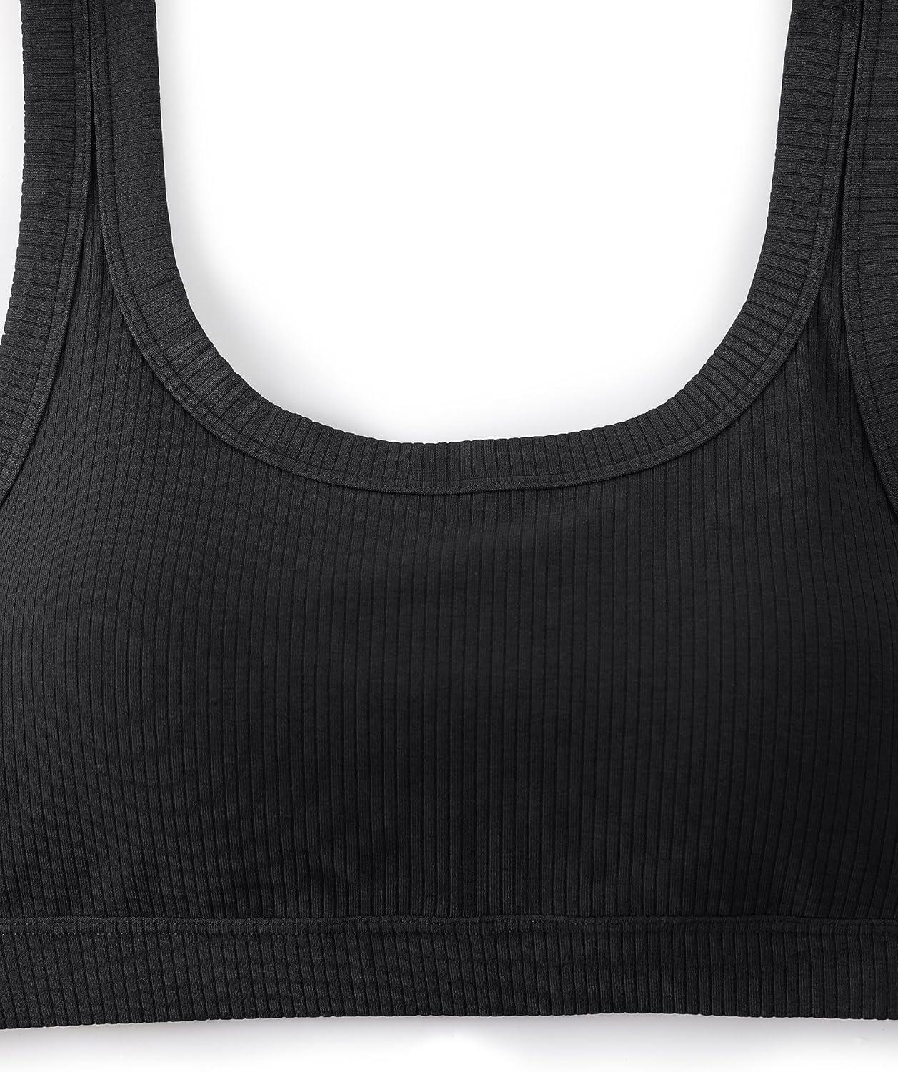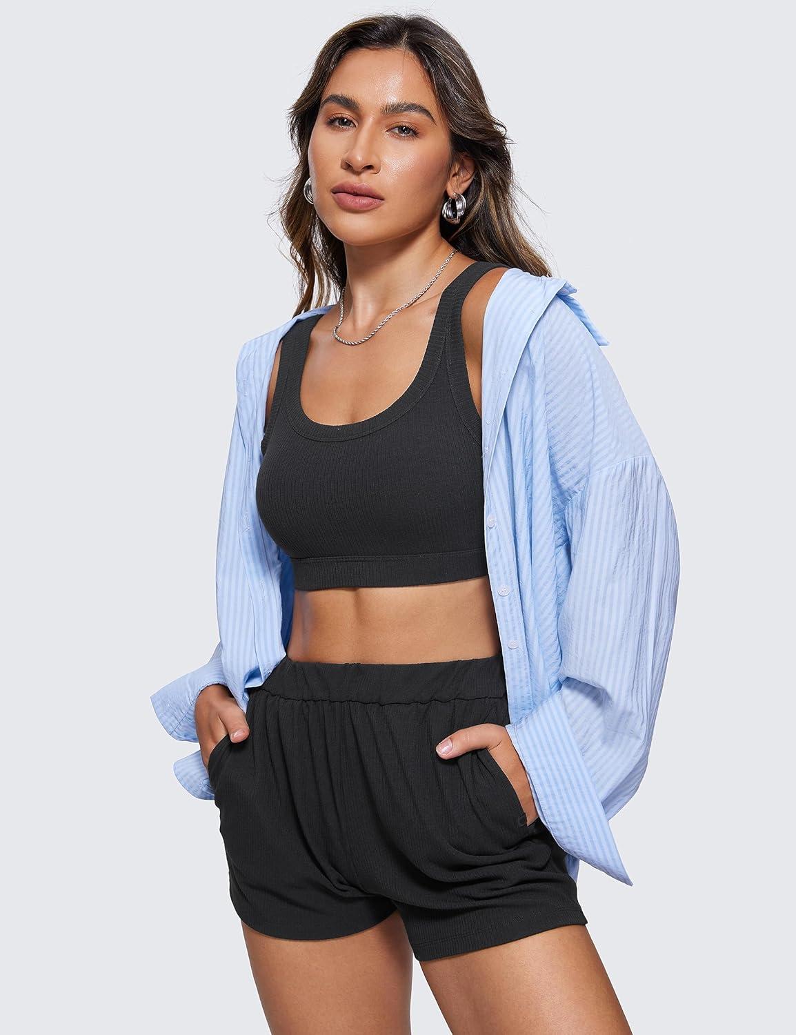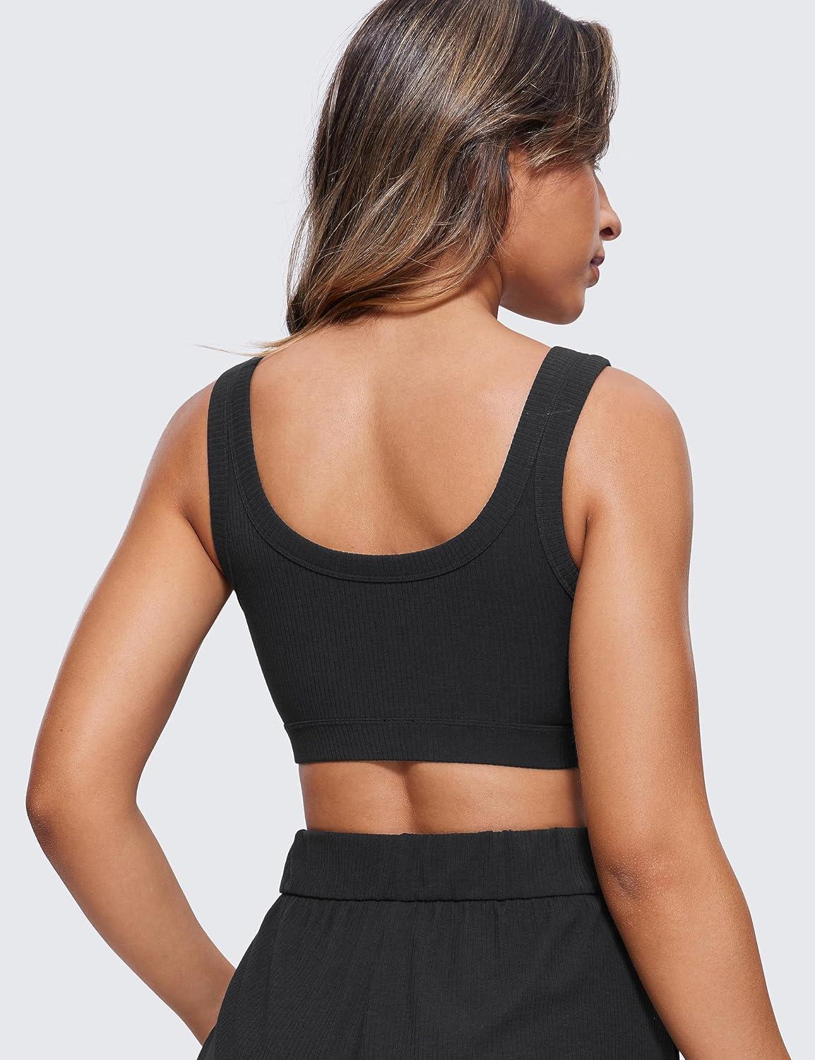 CRZ YOGA Ribbed Sports Bras for Women – U Back Wireless Medium Impact Padded Yoga Workout Cami(Black)