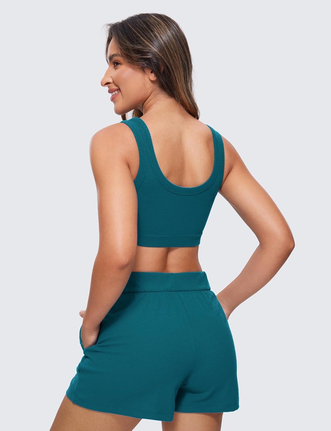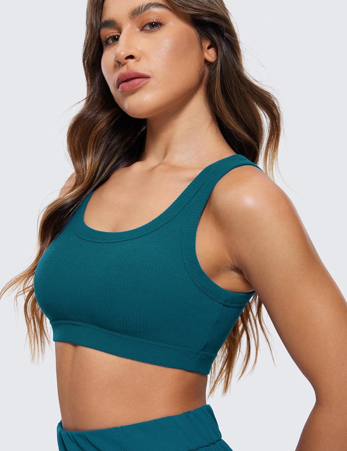 CRZ YOGA Ribbed Sports Bras for Women – U Back Wireless Medium Impact Padded Yoga Workout Cami(Borealis Green)