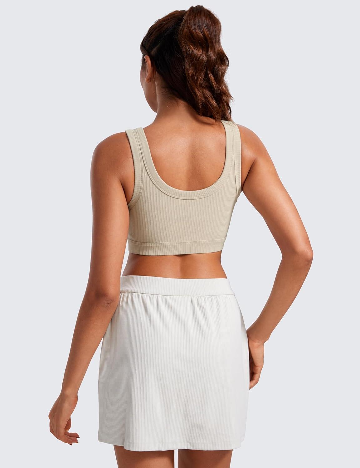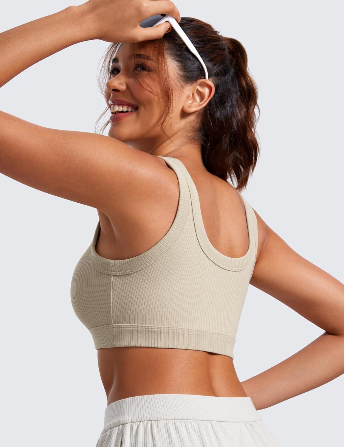 CRZ YOGA Ribbed Sports Bras for Women – U Back Wireless Medium Impact Padded Yoga Workout Cami(Mojave Tan)