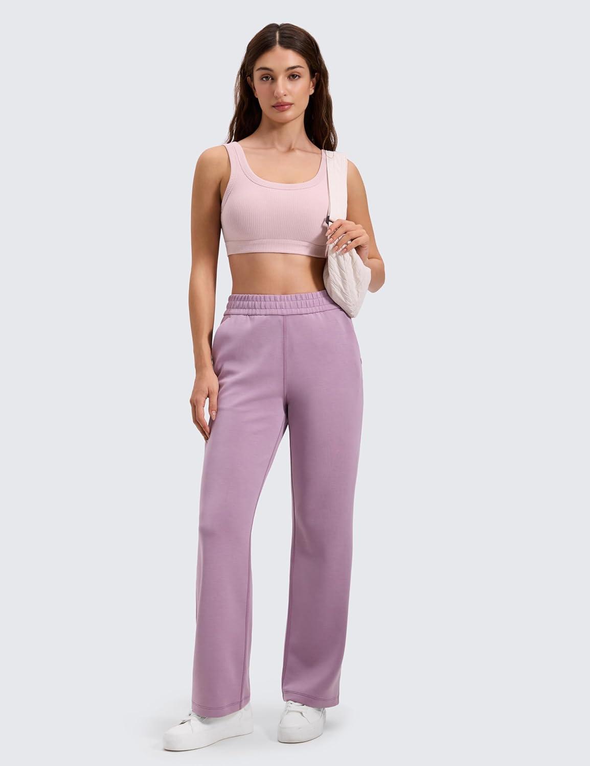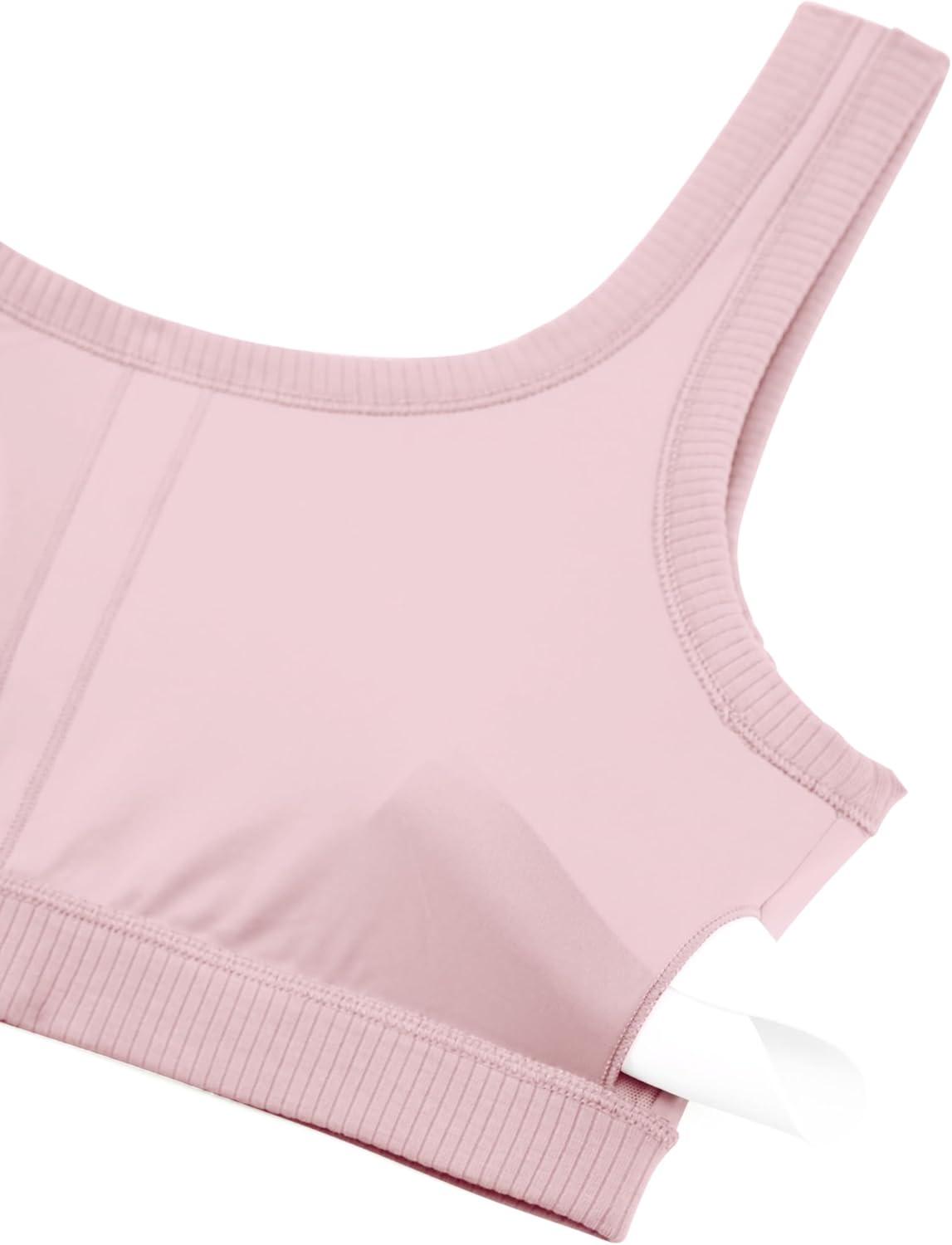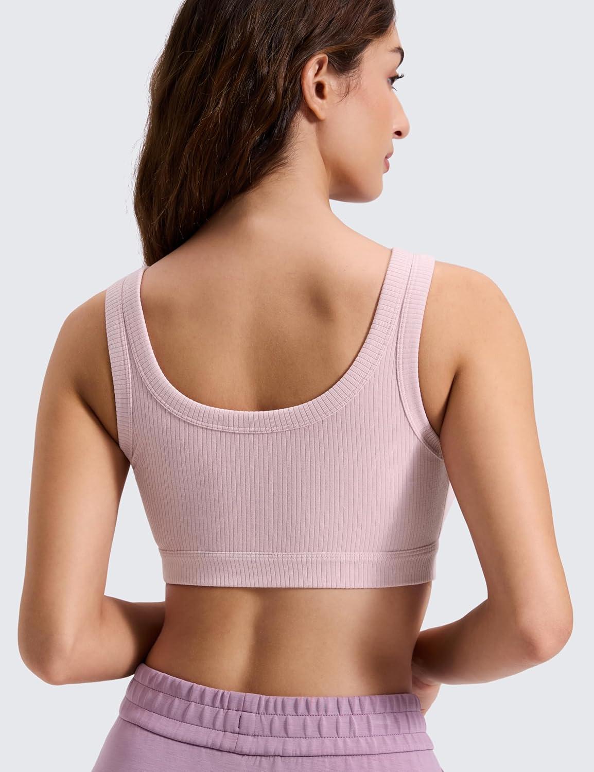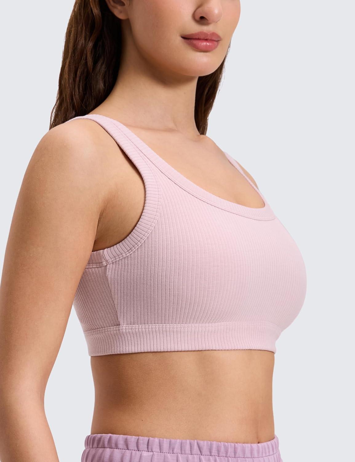 CRZ YOGA Ribbed Sports Bras for Women – U Back Wireless Medium Impact Padded Yoga Workout Cami(Pink Haze)