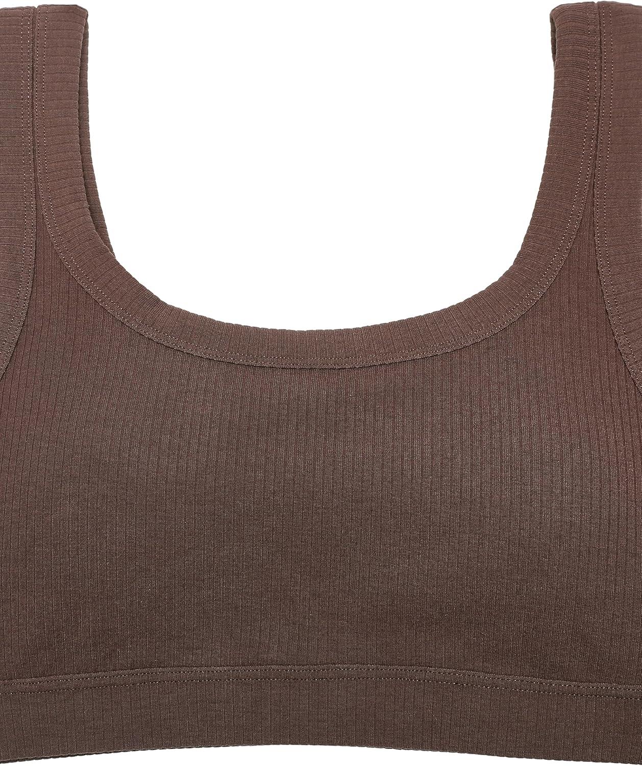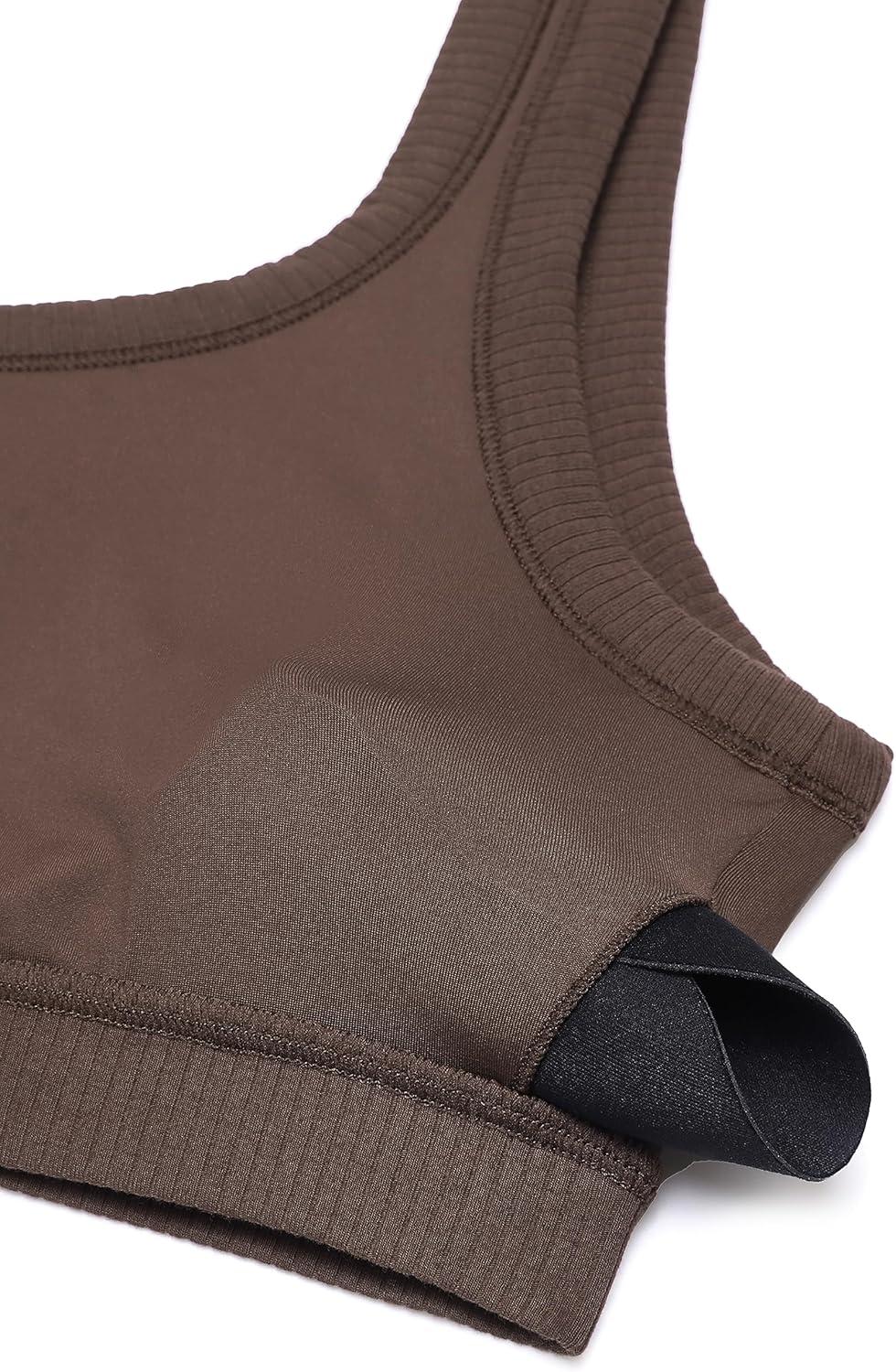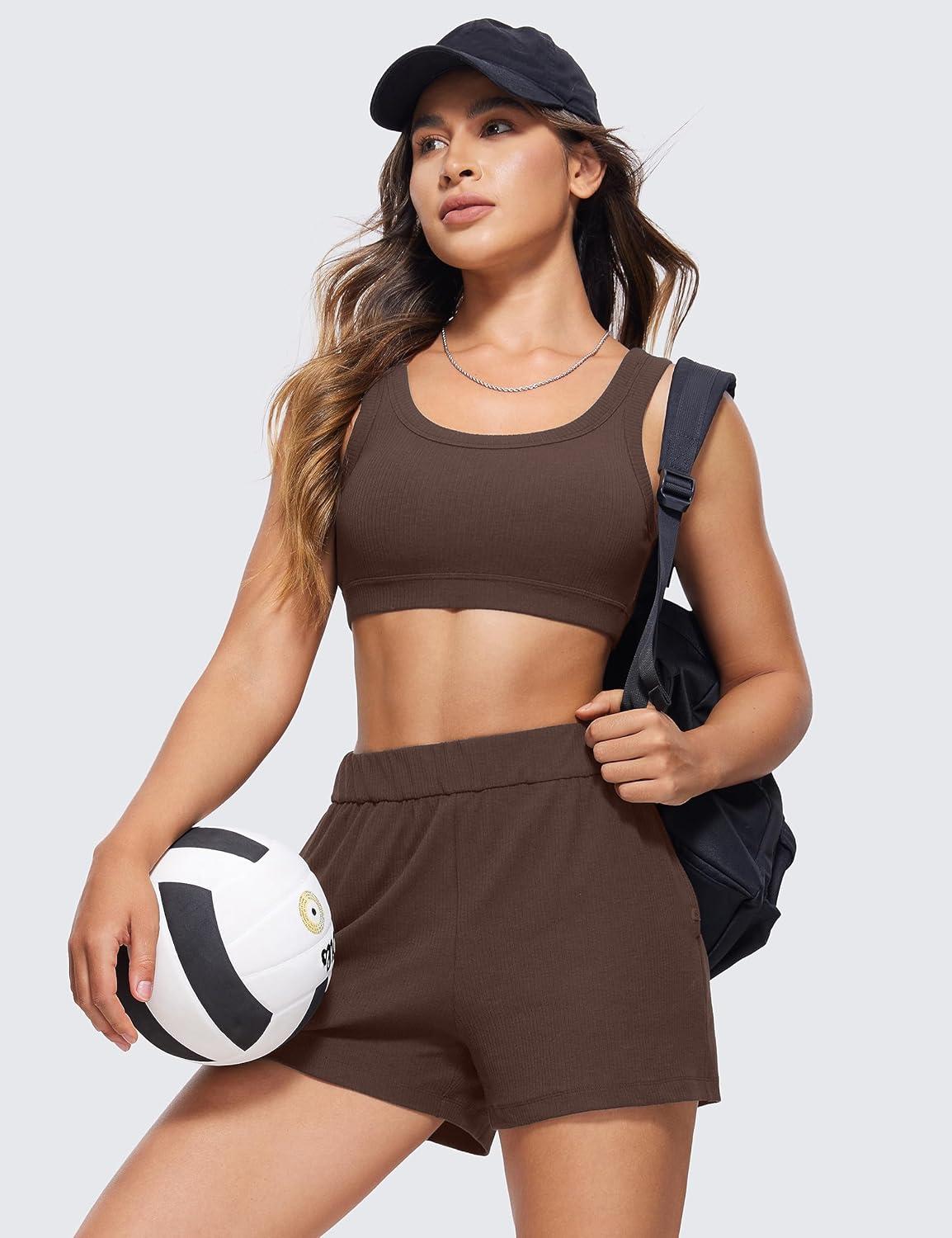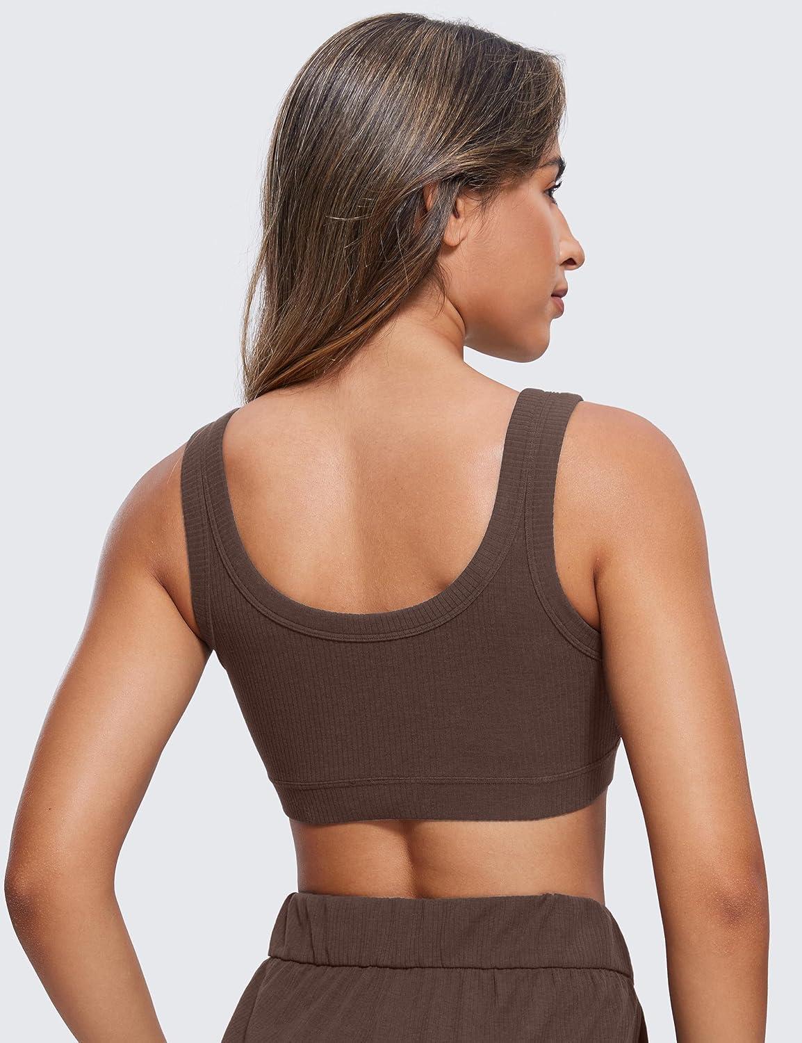 CRZ YOGA Ribbed Sports Bras for Women – U Back Wireless Medium Impact Padded Yoga Workout Cami(Taupe)