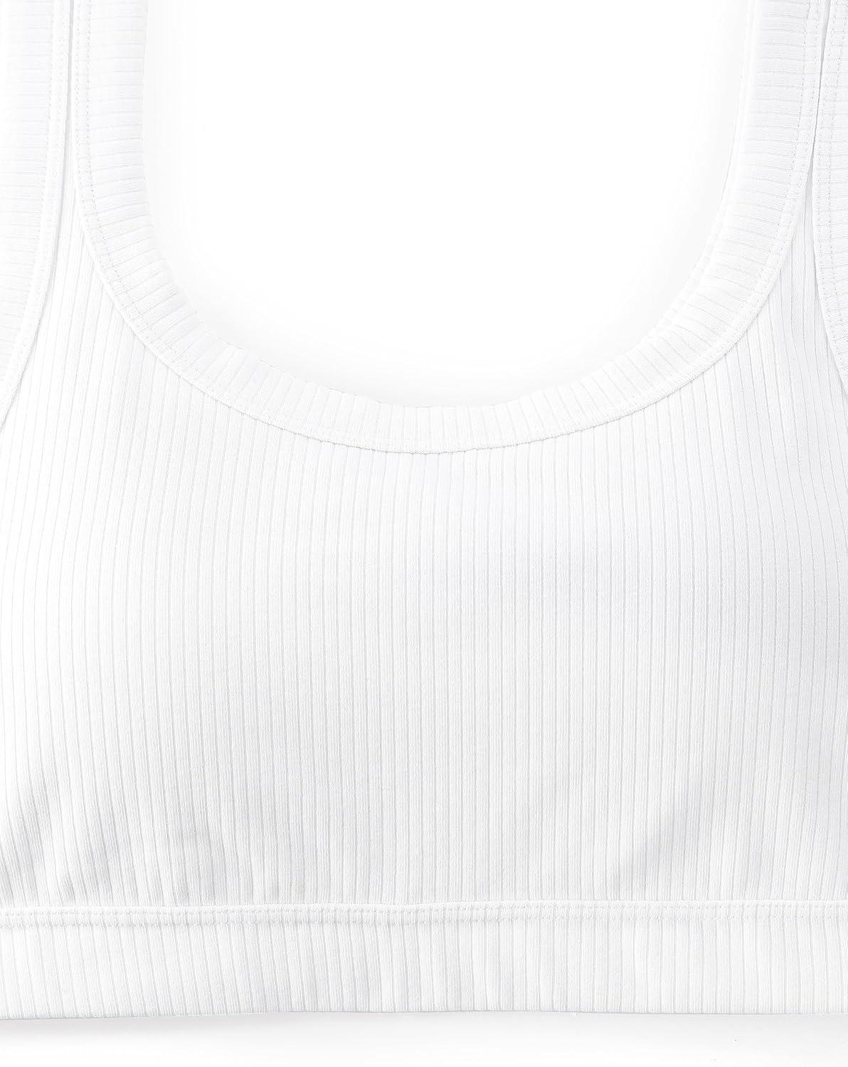 CRZ YOGA Ribbed Sports Bras for Women – U Back Wireless Medium Impact Padded Yoga Workout Cami(White)