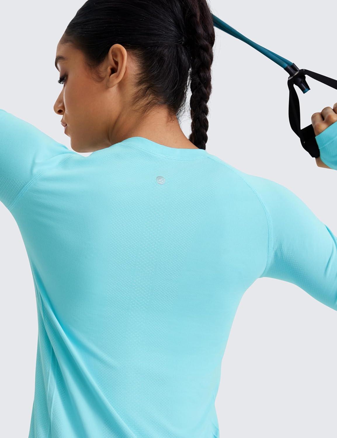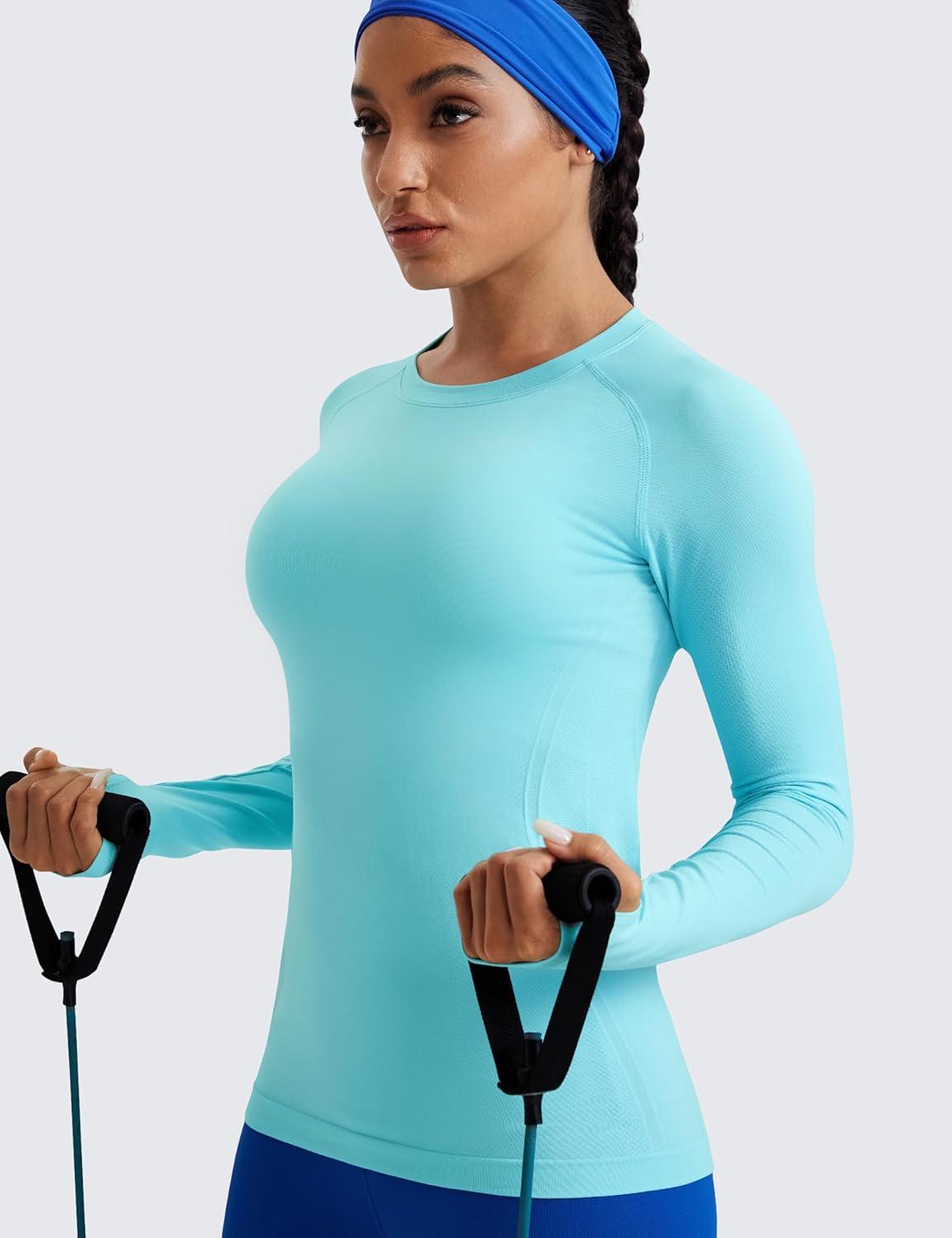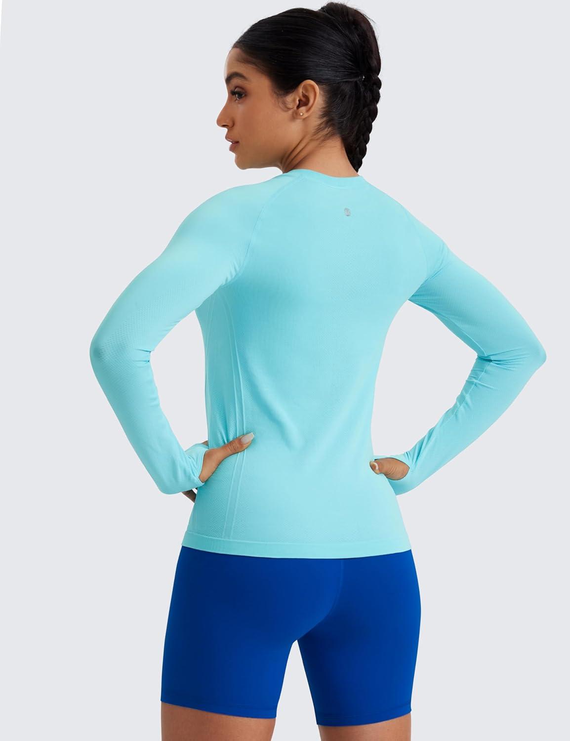 CRZ YOGA Seamless Long Sleeve Shirts for Women Hip – Workout Athletic Running Gym Yoga Tops Breathable Crew Neck T-Shirt(Turquoise)