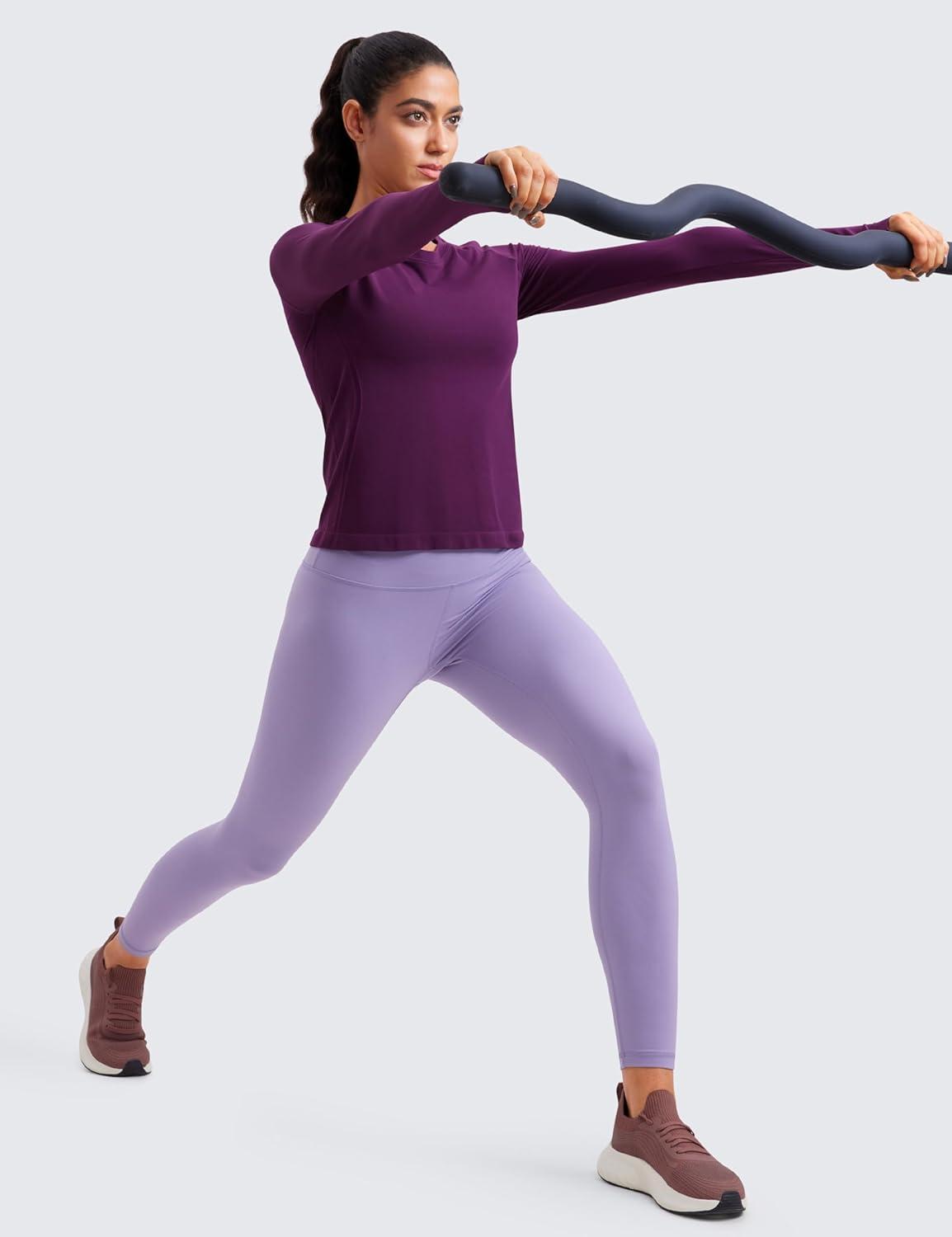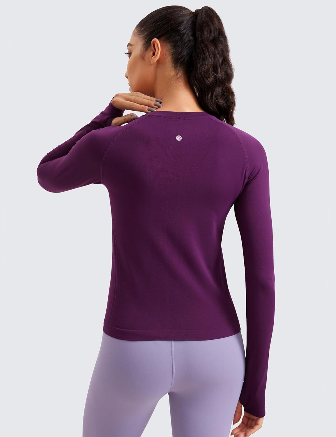 CRZ YOGA Seamless Long Sleeve Shirts for Women Waist Length – Workout Athletic Running Gym Yoga Tops Crewneck Breathable(Plum Magenta)