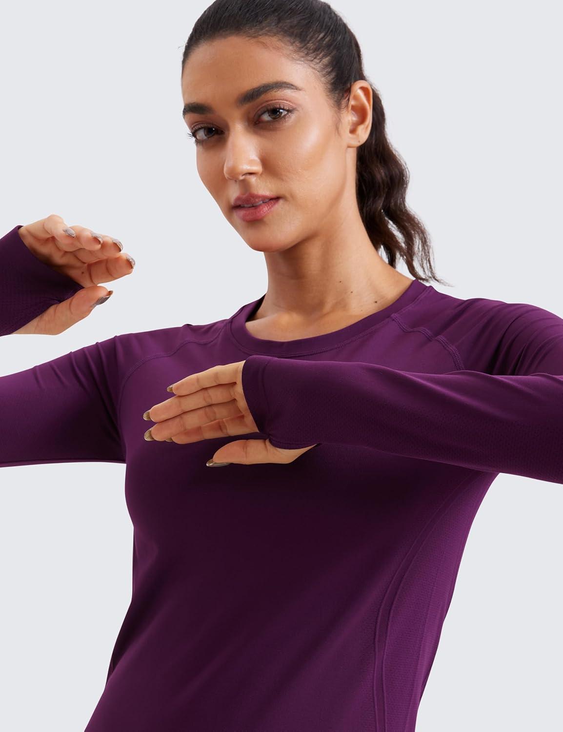CRZ YOGA Seamless Long Sleeve Shirts for Women Waist – Workout Athletic Running Gym Yoga Tops Crewneck Breathable Quick Dry(Plum Magenta)