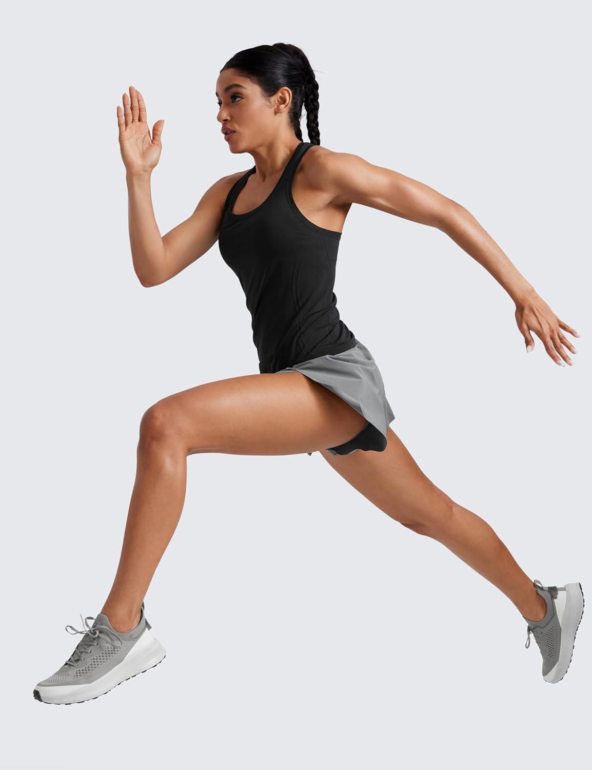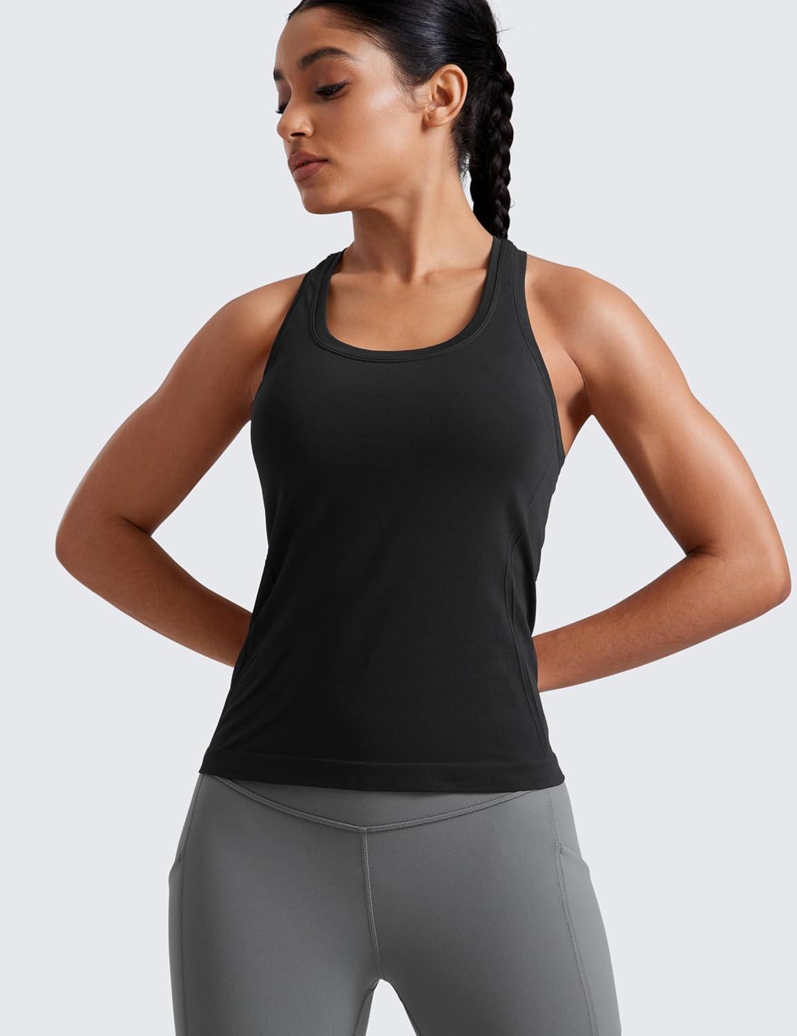 CRZ YOGA Seamless Racerback Tank Tops for Women – Gym Workout Athletic Running Sleeveless Shirts Breathable Scoop Neck(Black)