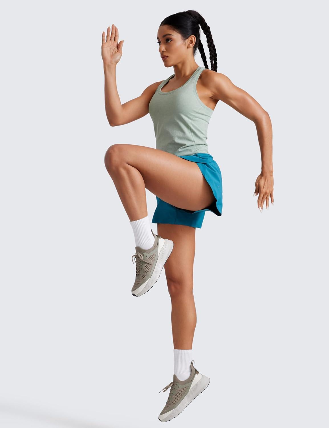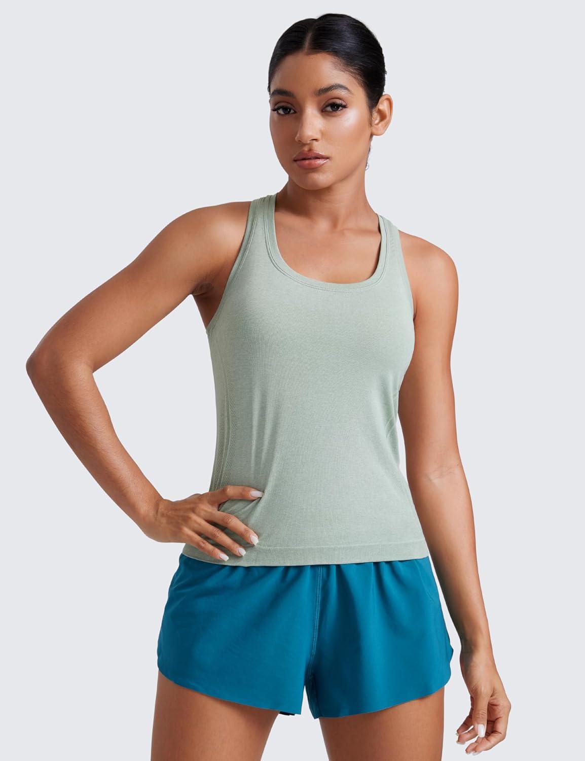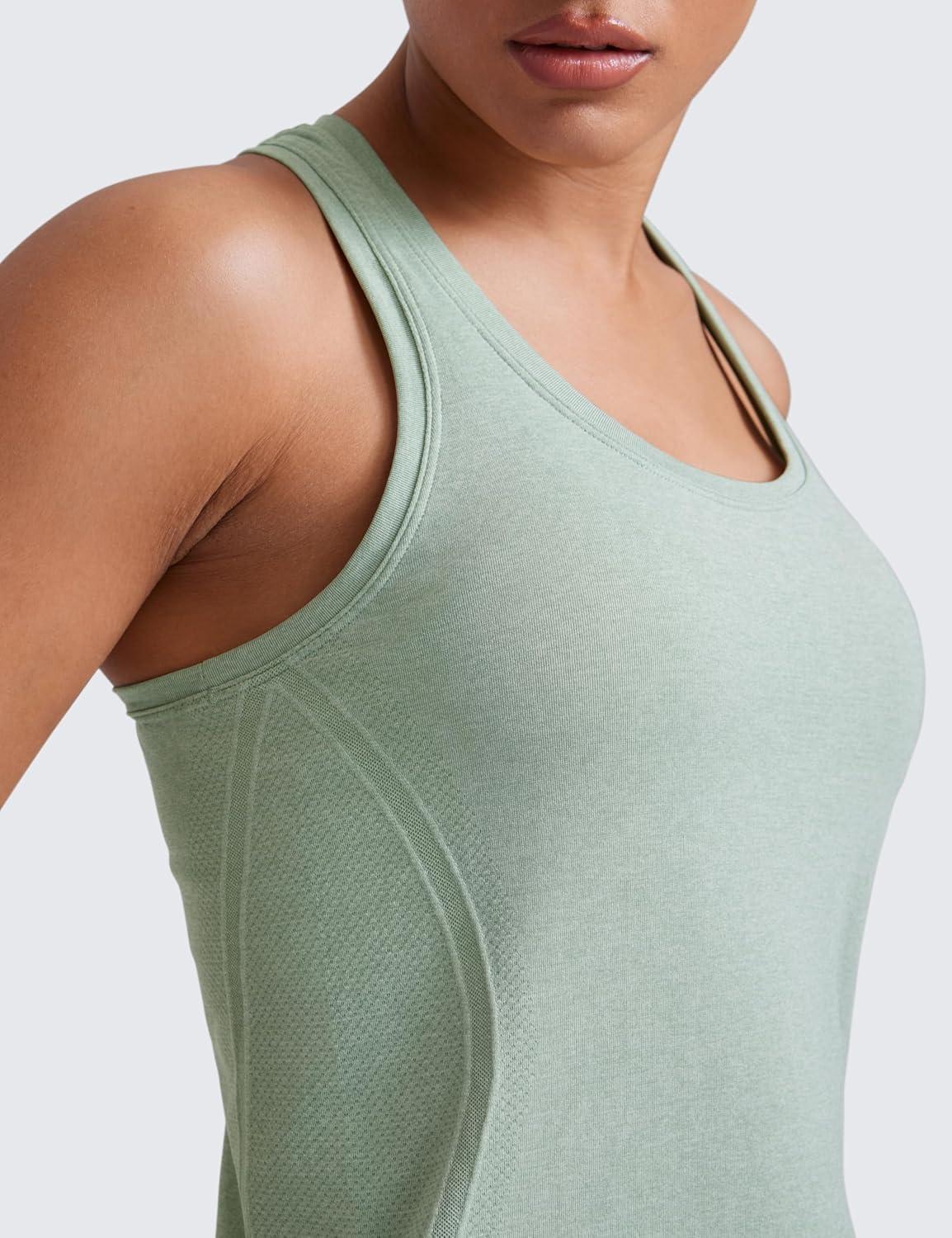 CRZ YOGA Seamless Racerback Tank Tops for Women – Gym Workout Athletic Running Sleeveless Shirts Breathable Scoop Neck(Green Palm Court Heather)