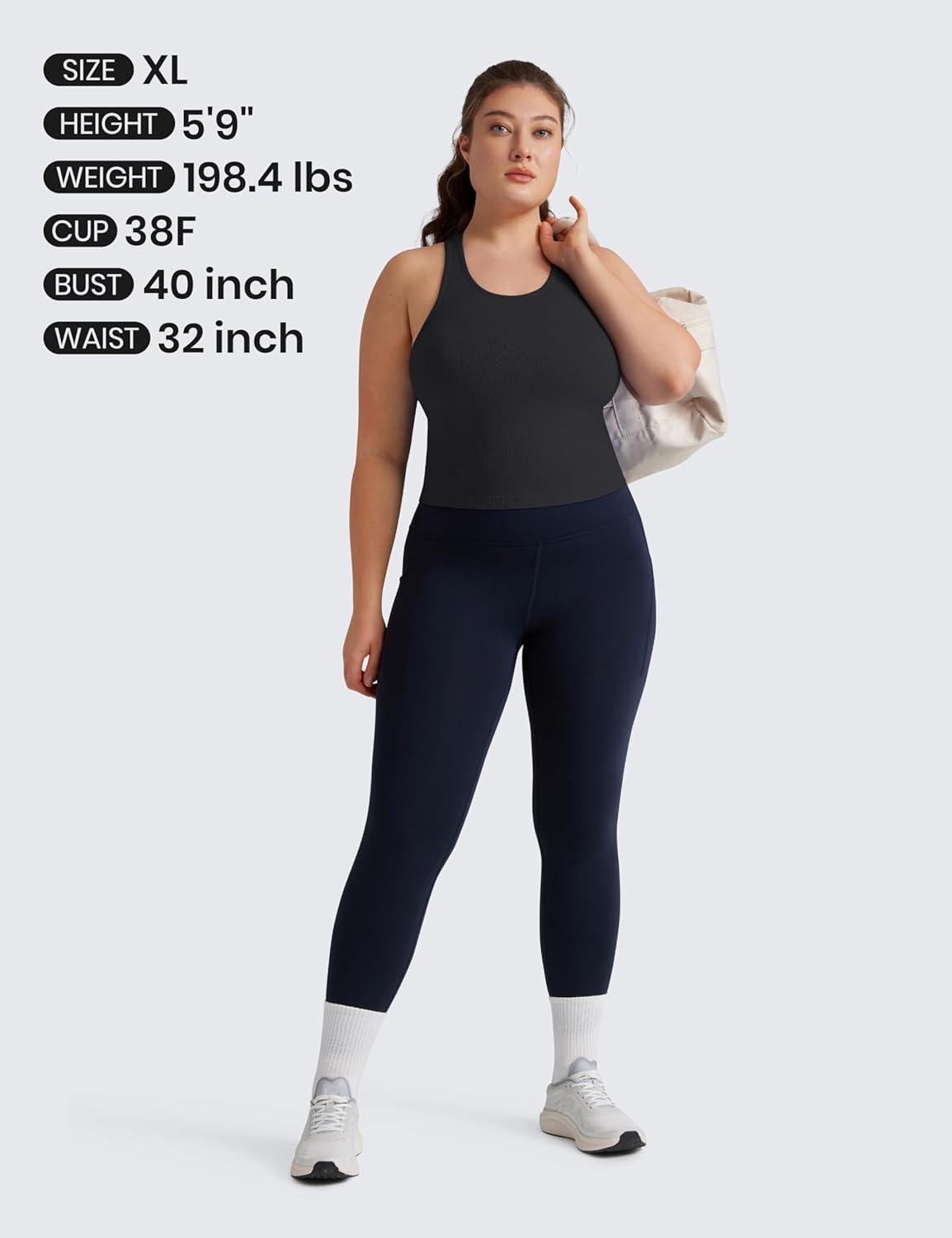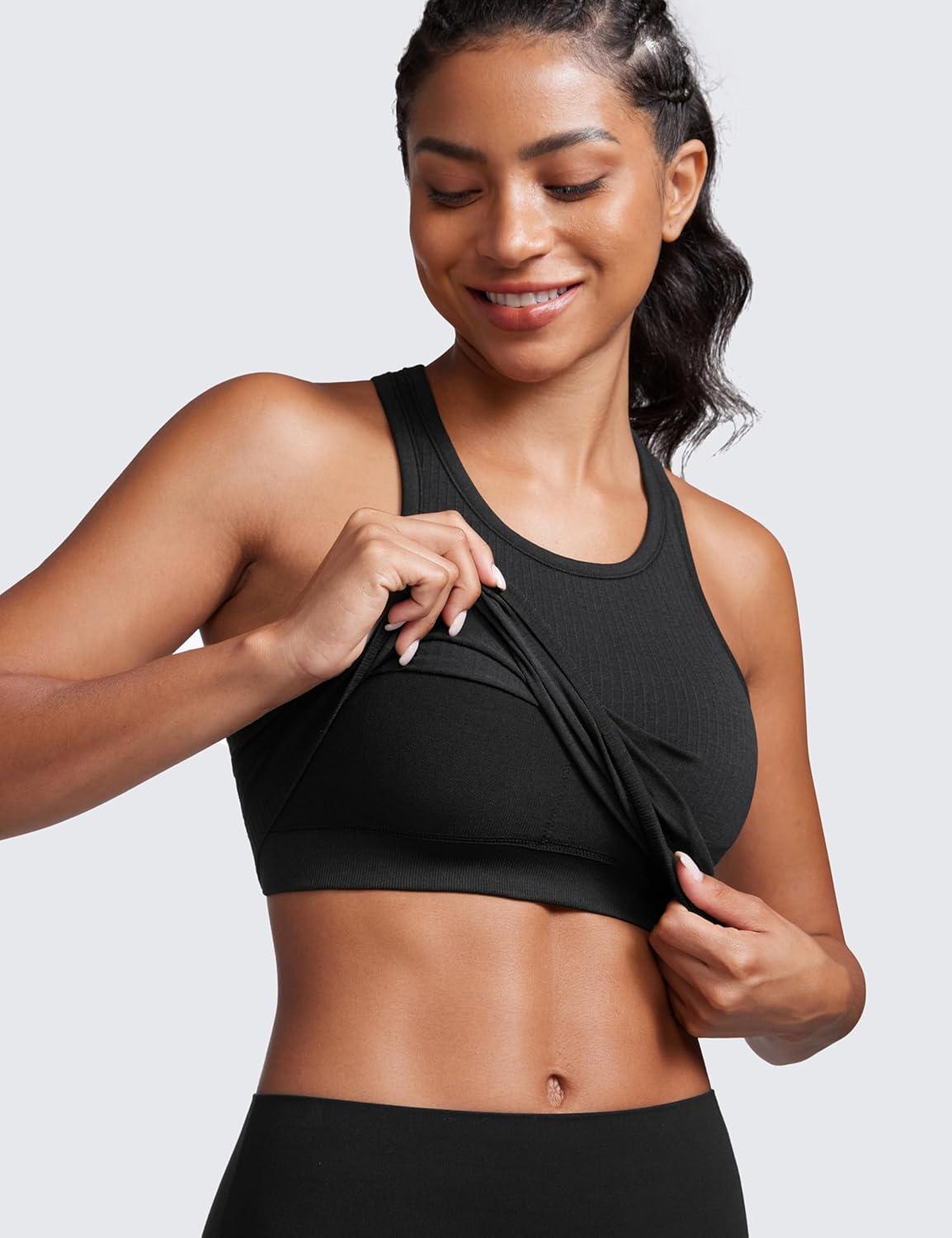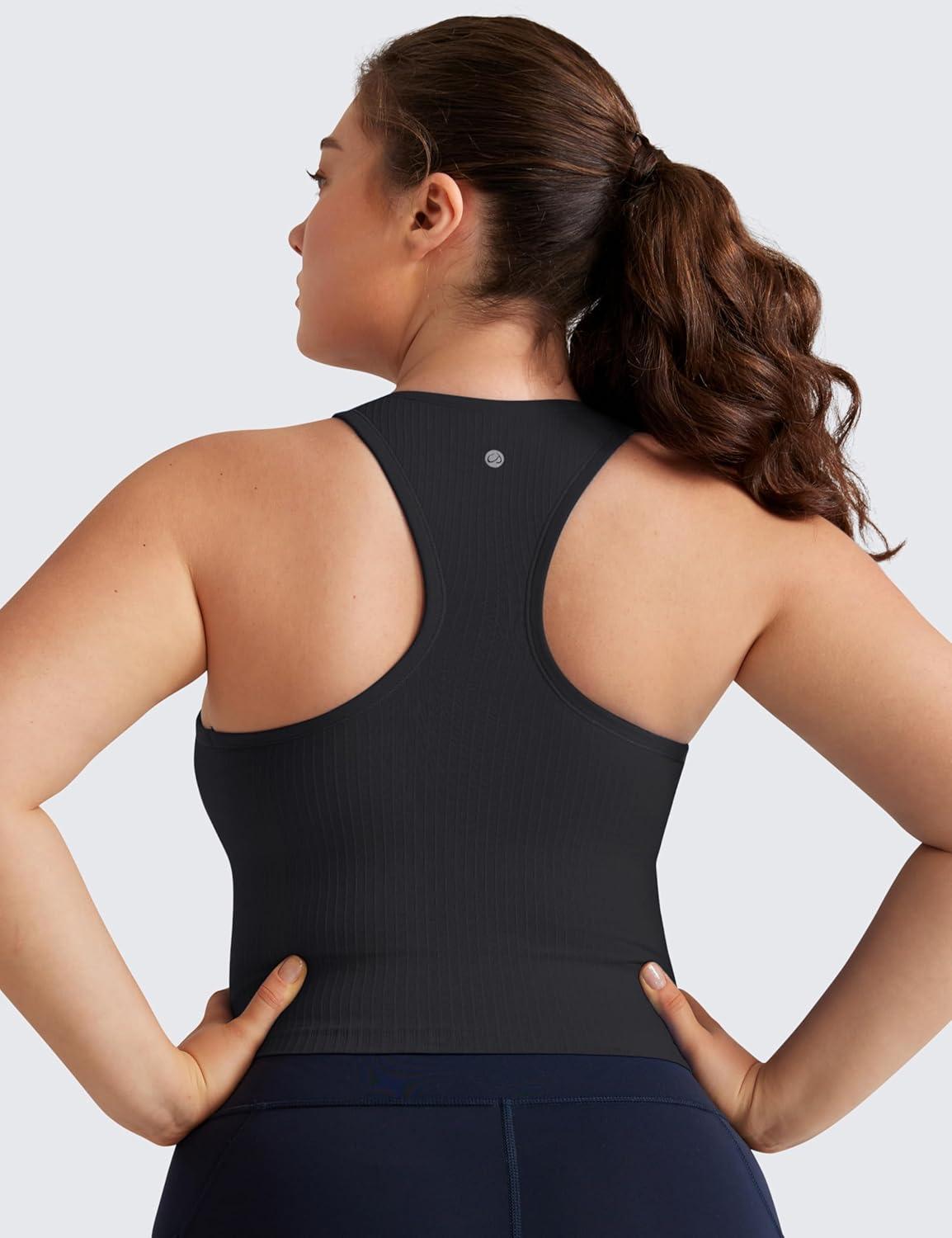 CRZ YOGA Seamless Ribbed High Neck Crop Tank Tops for Women – Longline Racerback Padded Sports Bras(Black)