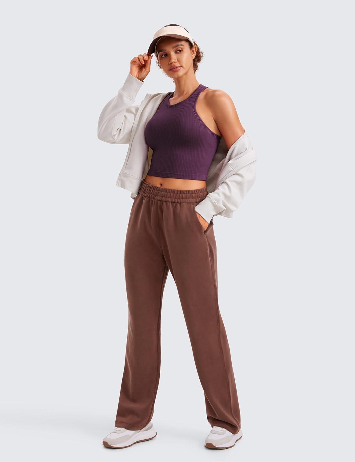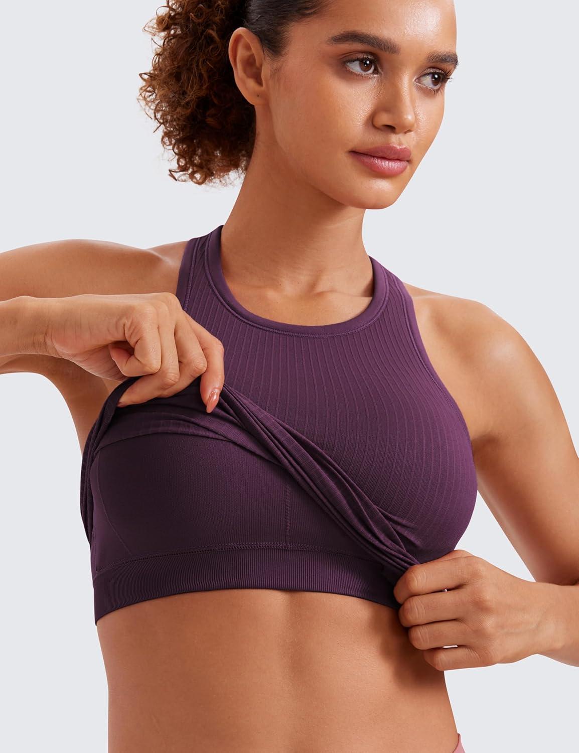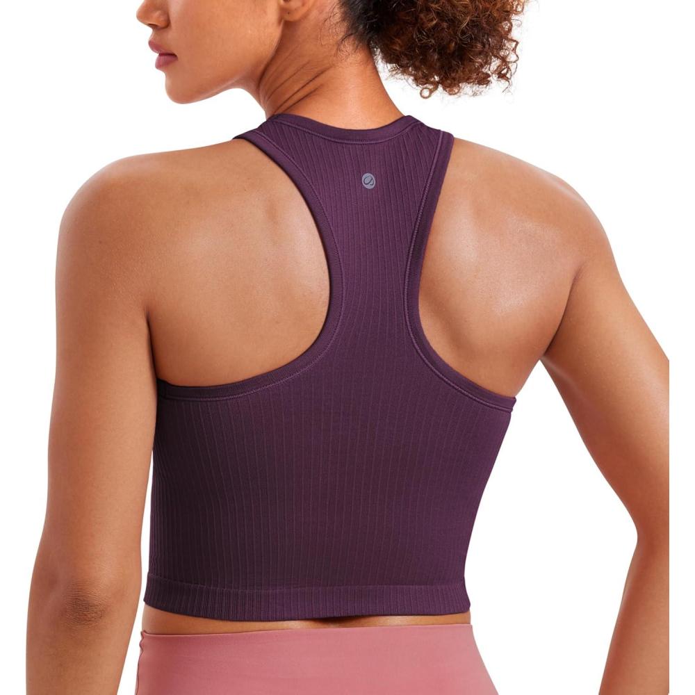 CRZ YOGA Seamless Ribbed High Neck Crop Tank Tops for Women – Longline Racerback Padded Sports Bras(Deep Purple)