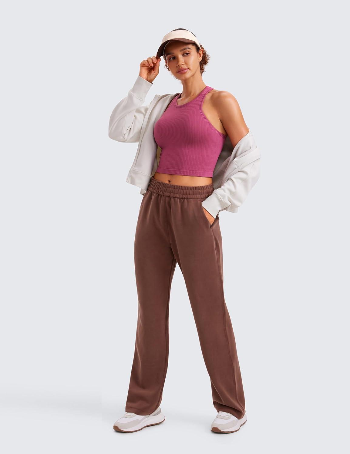 CRZ YOGA Seamless Ribbed High Neck Crop Tank Tops for Women – Longline Racerback Padded Sports Bras(Washed Mauve)