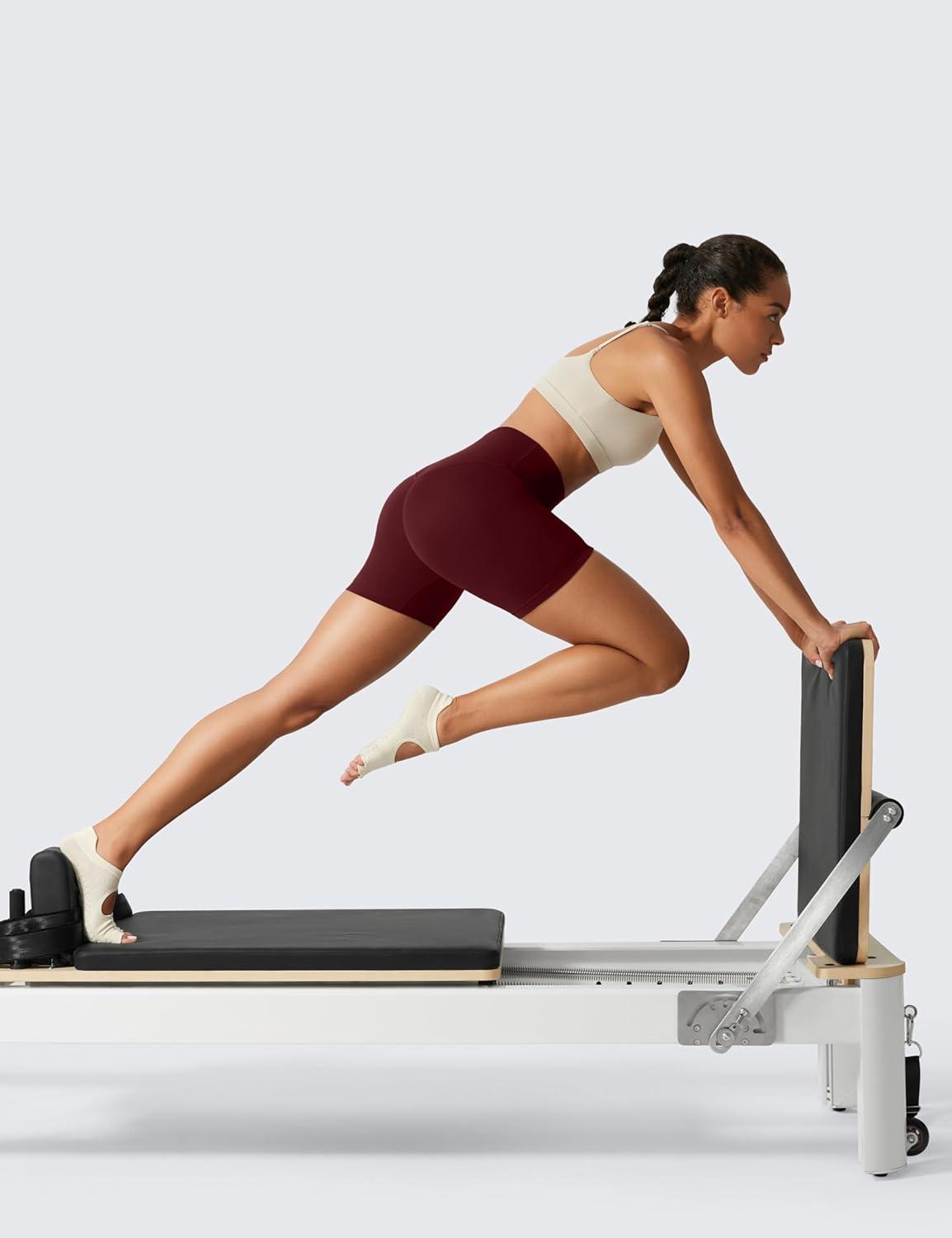 CRZ YOGA Secretsculpt Butterlift Biker Shorts 4″ – No Front Seam High Waisted Womens Workout Gym Booty Scrunch Butt(Red Merlot)