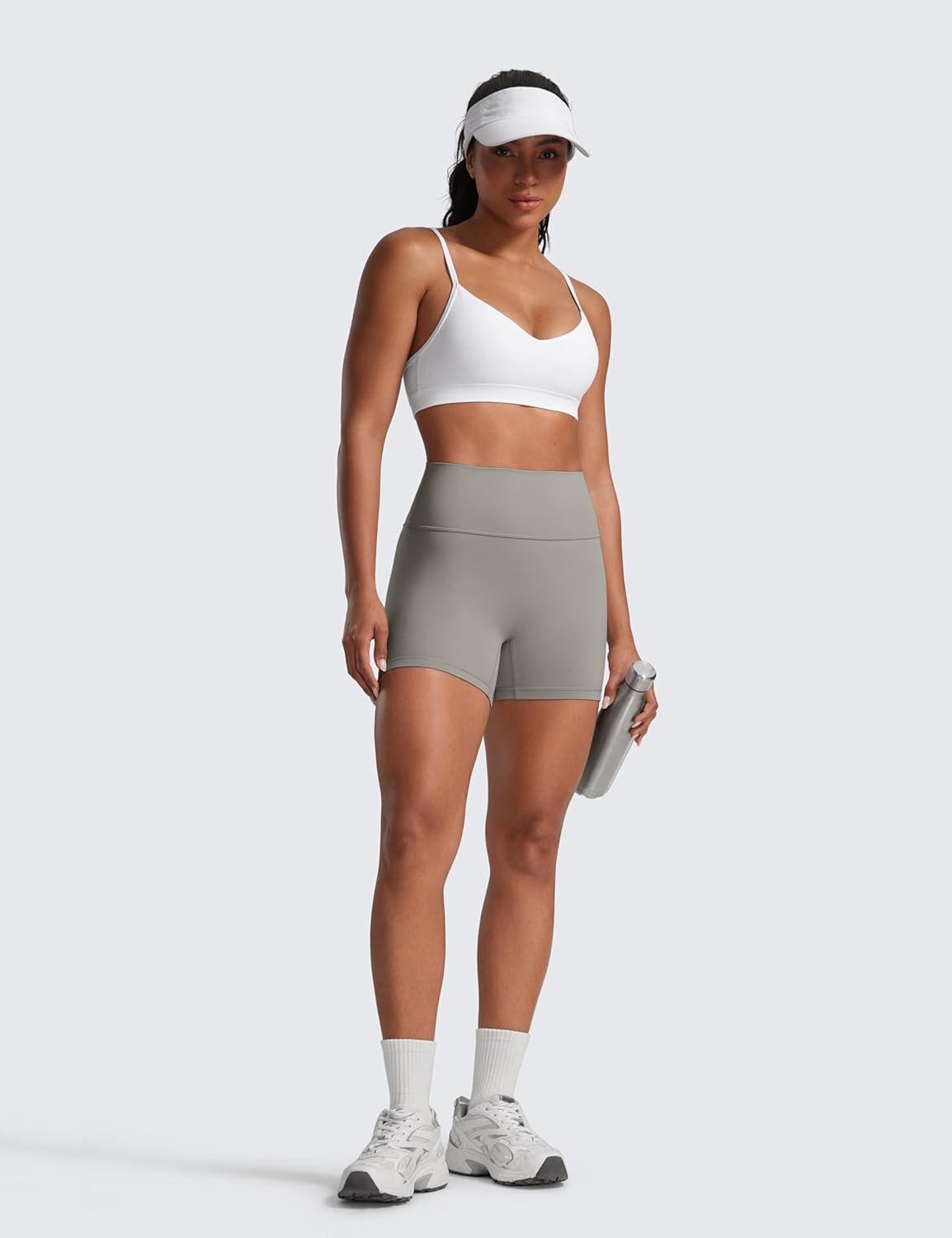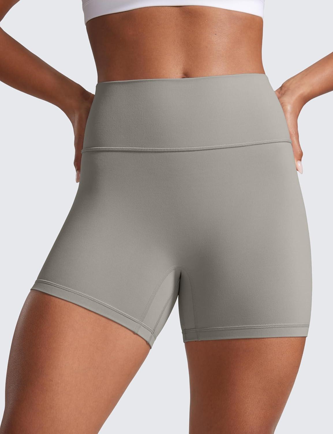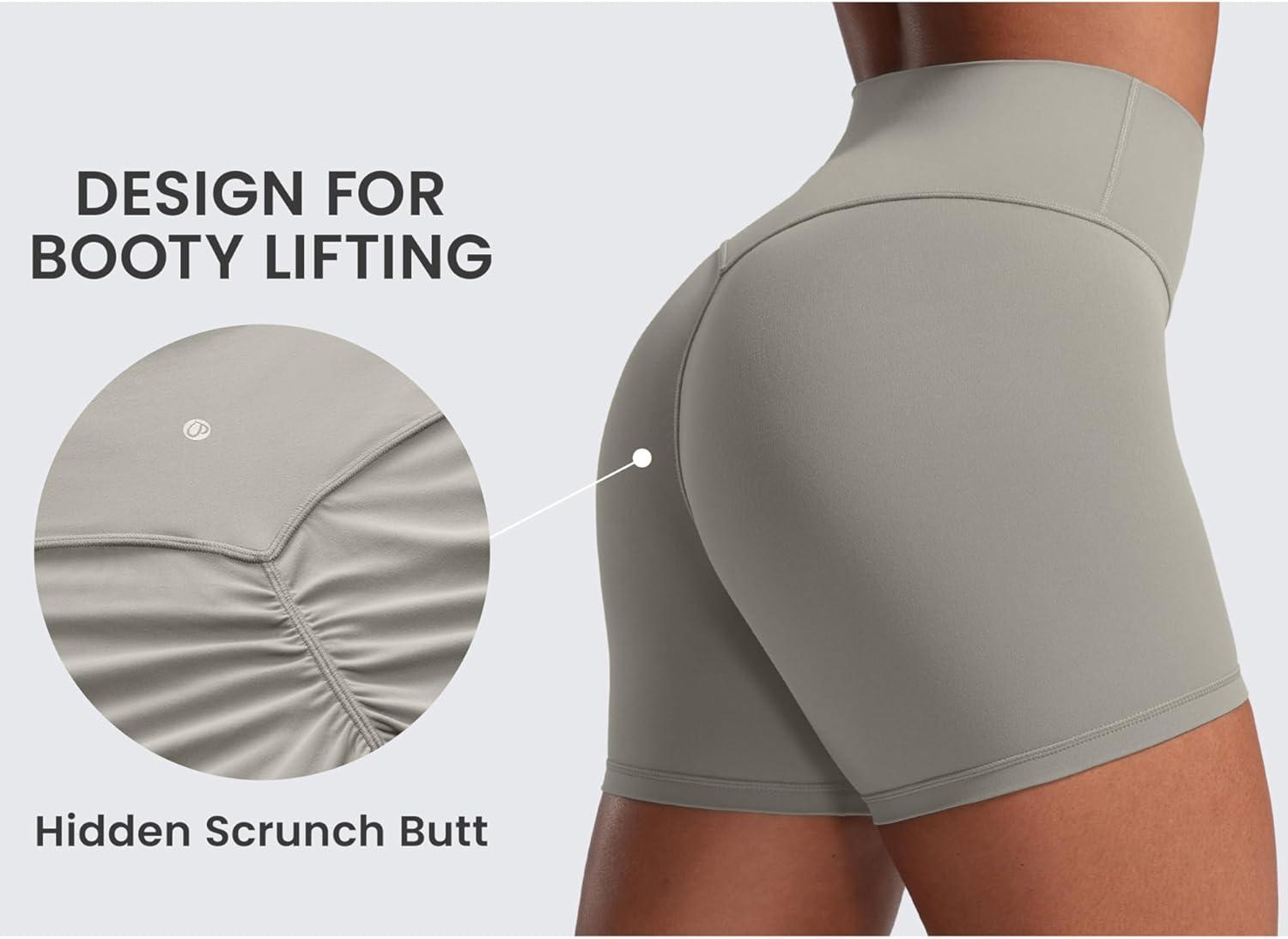 CRZ YOGA Secretsculpt Butterlift Biker Shorts 4″ – No Front Seam High Waisted Womens Workout Gym Booty Scrunch Butt(Rock Grey)