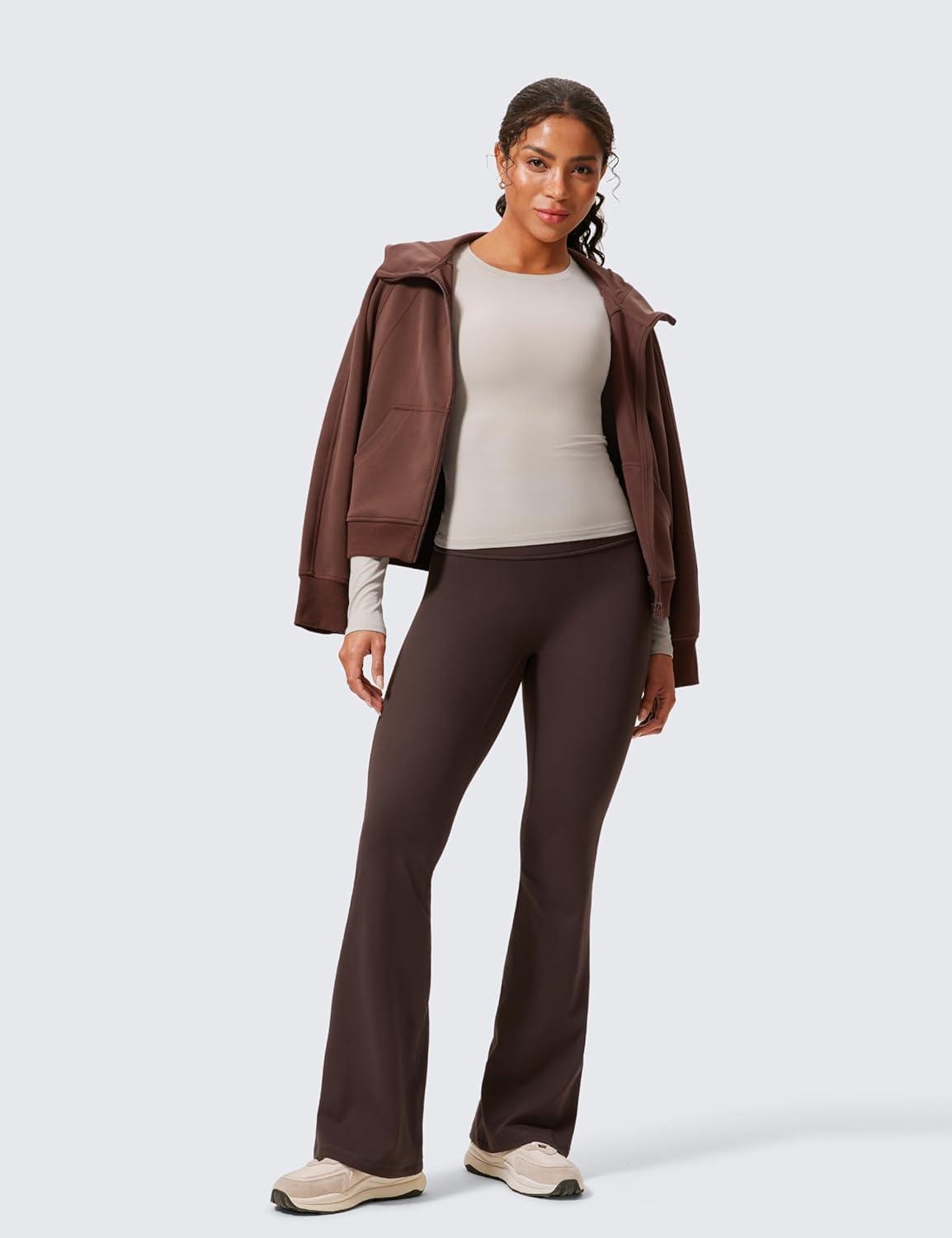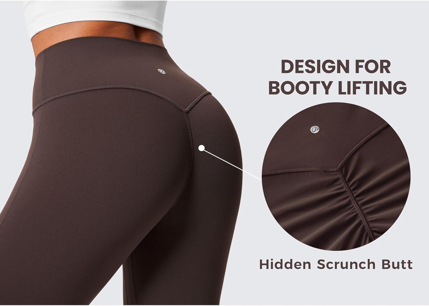CRZ YOGA Secretsculpt Butterlift Flare Leggings 31″ – No Front Seam High Waist Bootcut Yoga Pants Booty Scrunch Butt(Hot Fudge Brown)