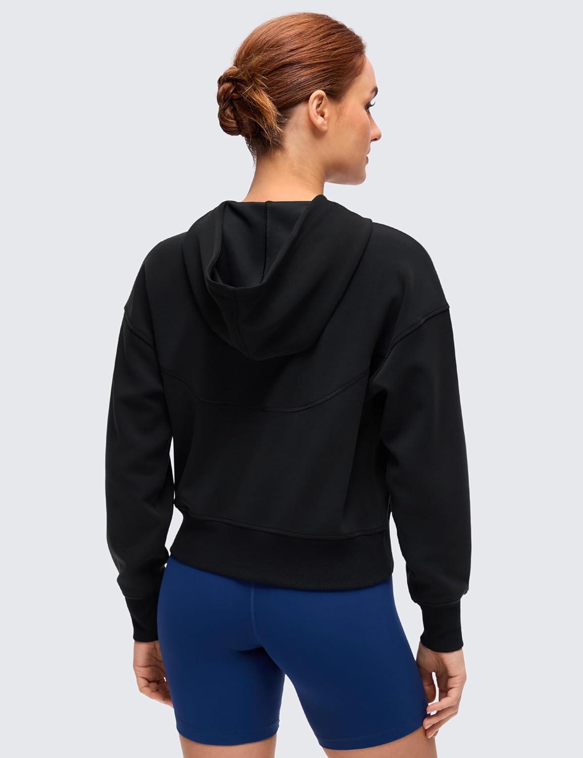 CRZ YOGA SoftAura Full Zip Hoodies for Women – Workout Casual Zipper Hooded Sweat Shirts with Pockets(Black)