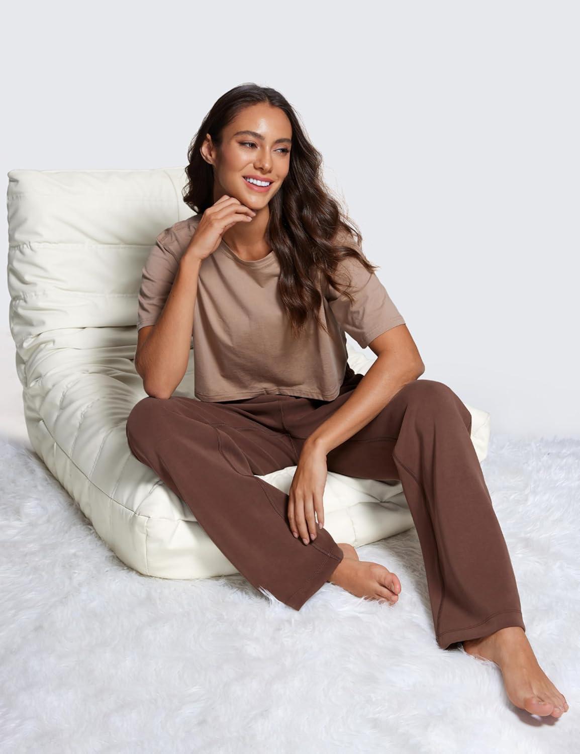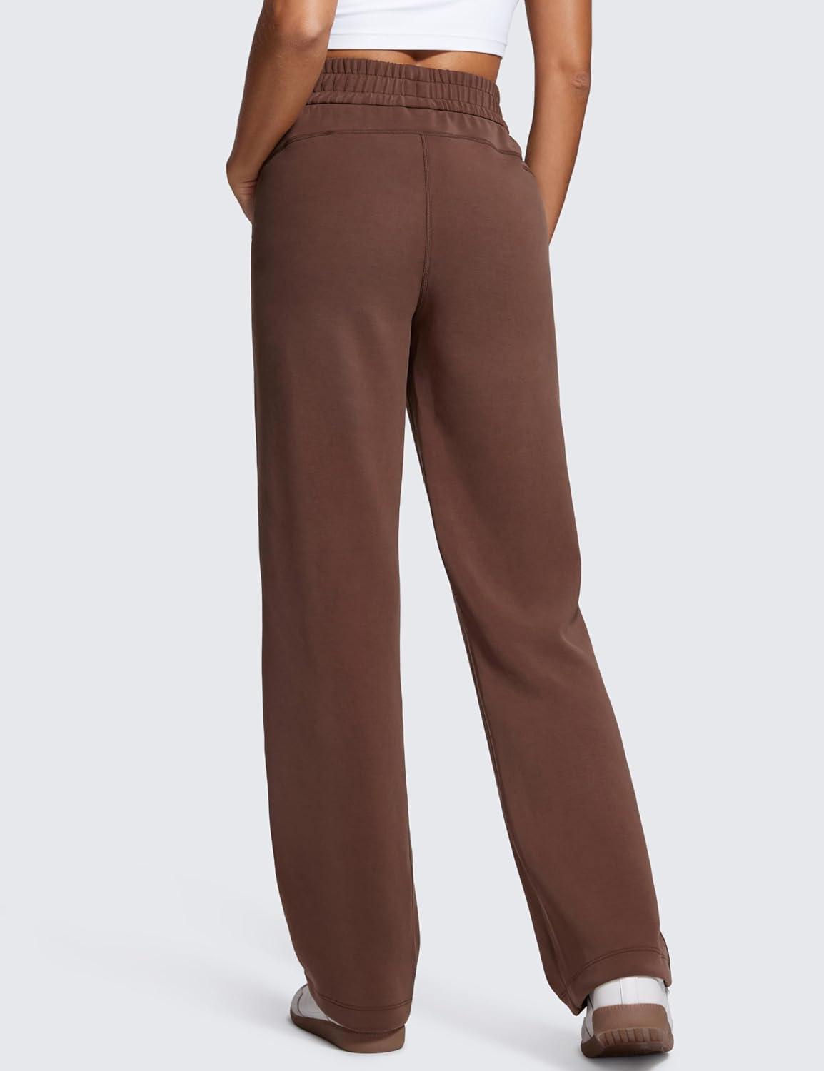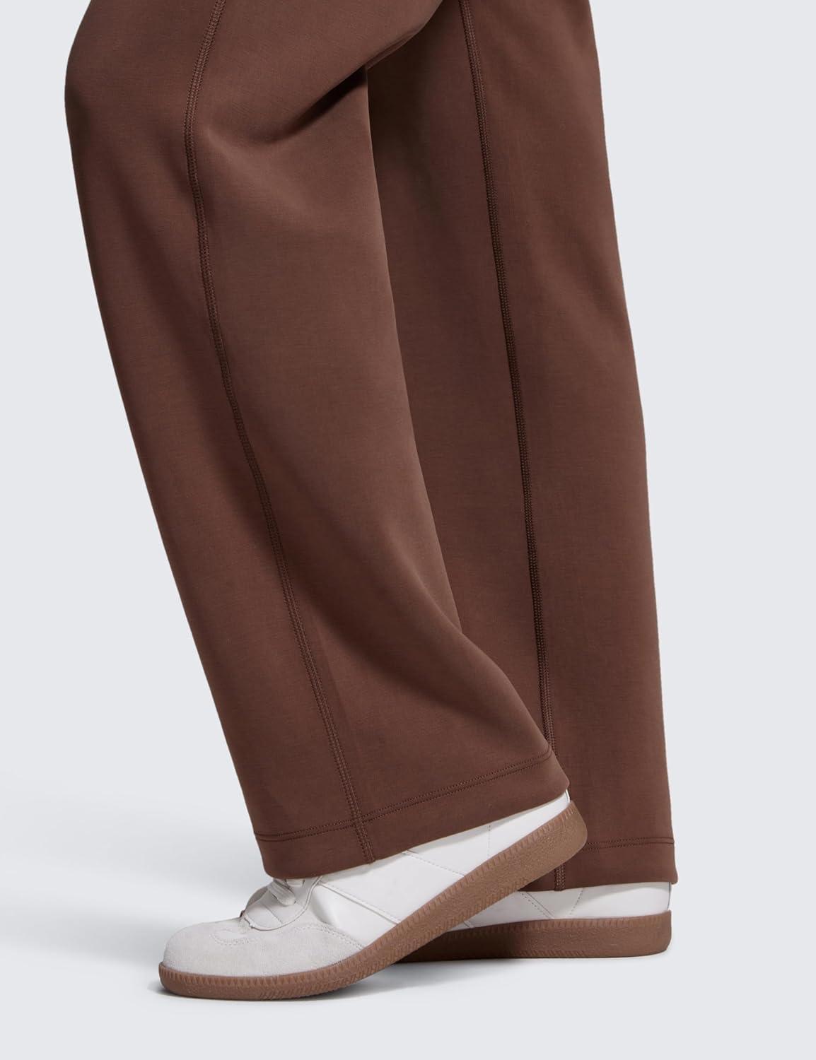 CRZ YOGA SoftAura Wide Leg Casual Sweatpants Women 29″/31″ – Modal Lounge Travel Casual Pants with Pockets(Coffee Brown)