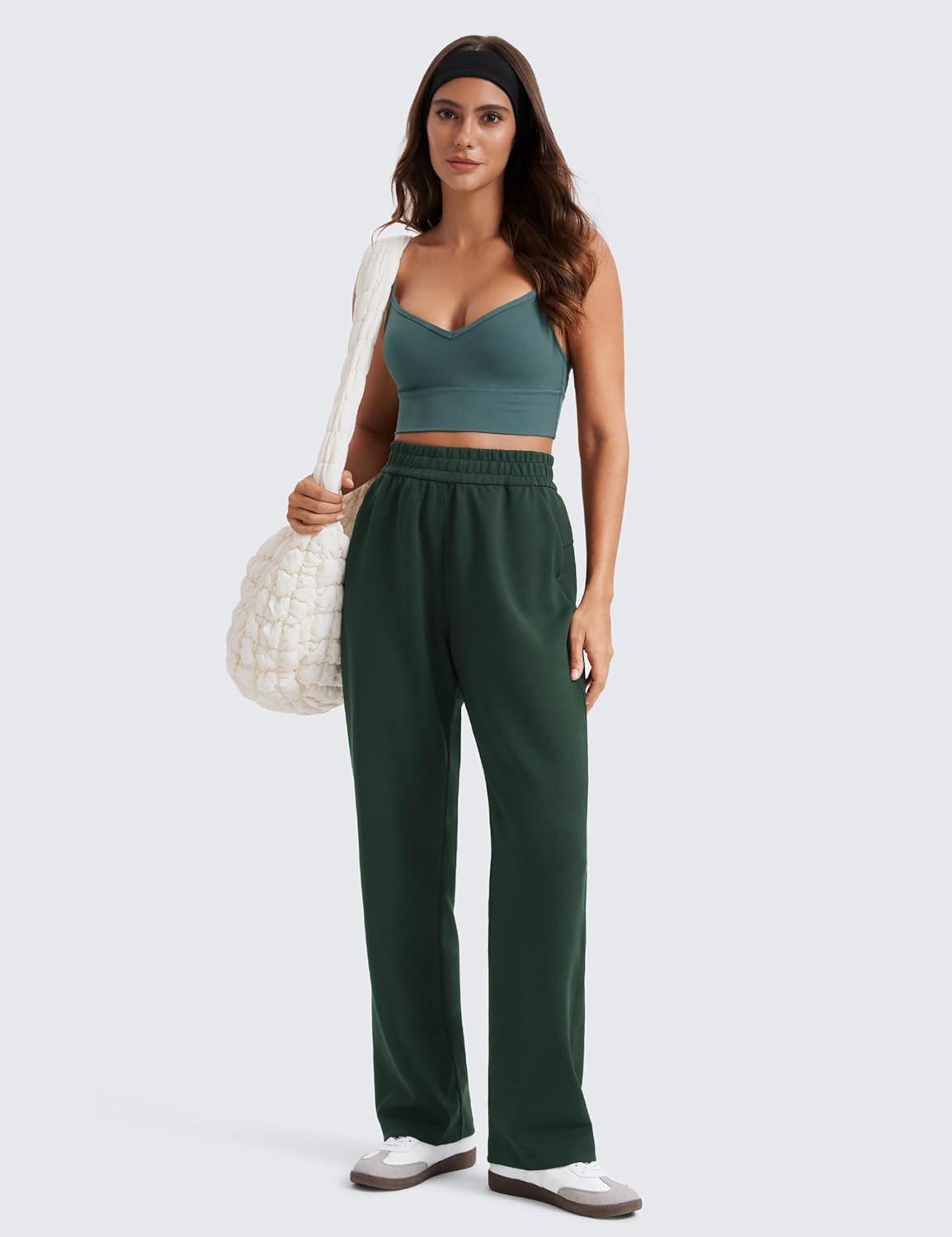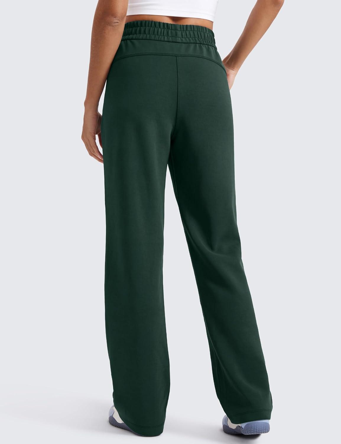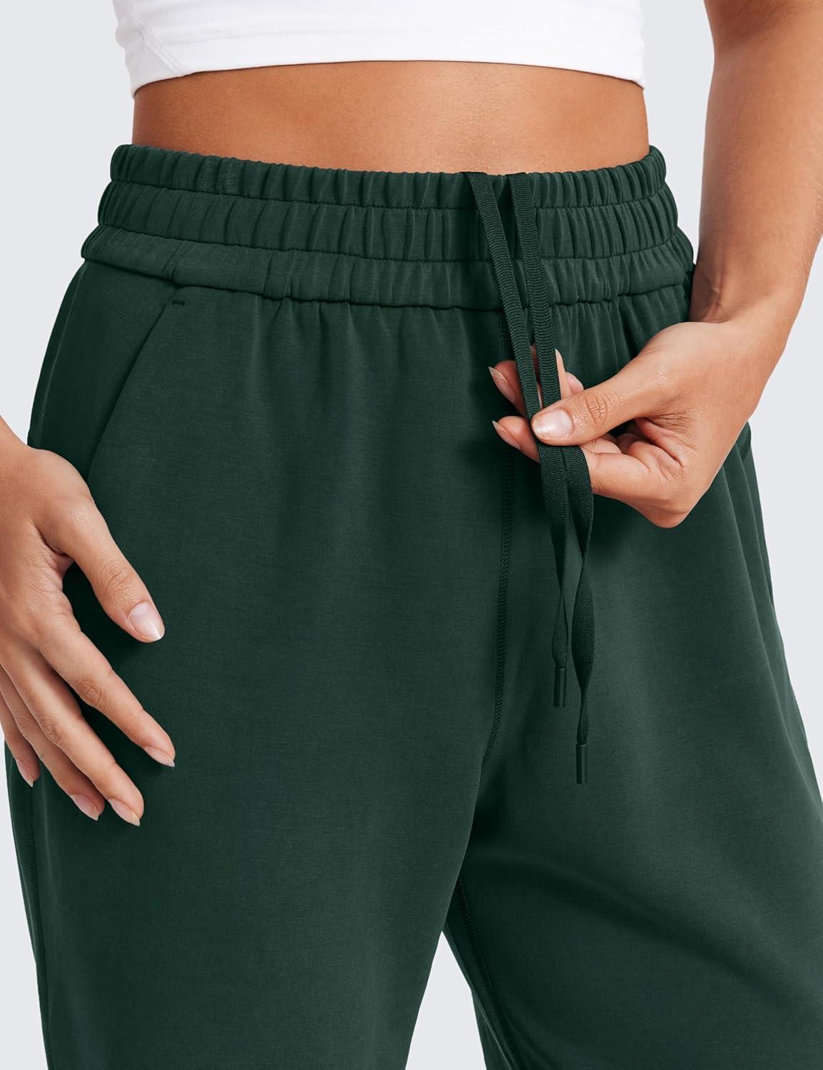 CRZ YOGA SoftAura Wide Leg Casual Sweatpants Women 29″/31″ – Modal Lounge Travel Casual Pants with Pockets(Legend Green)