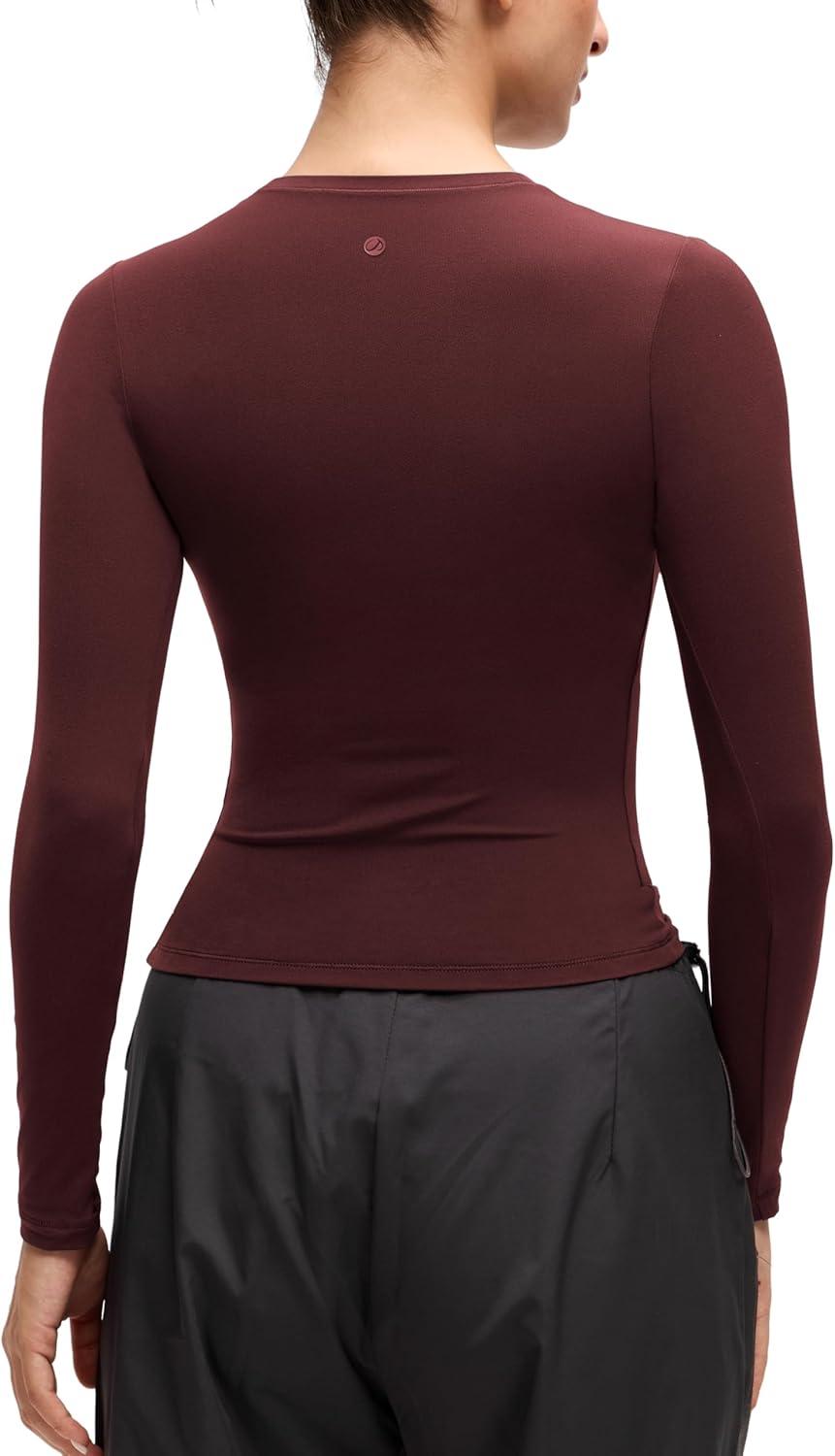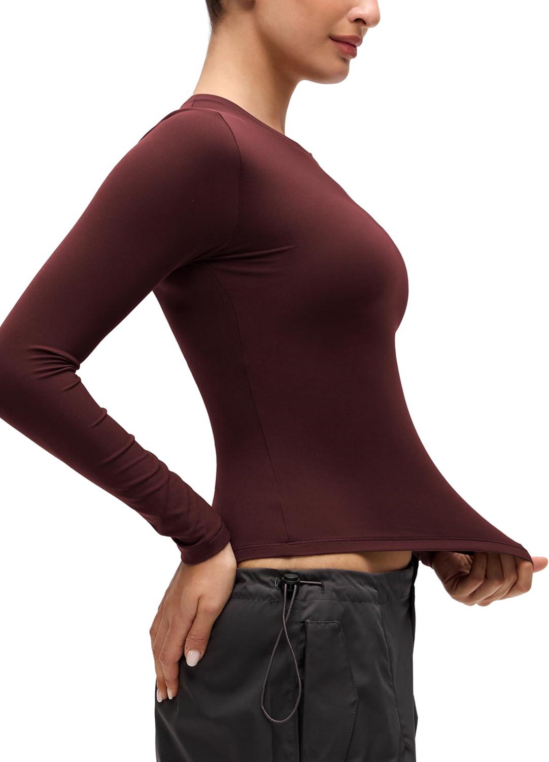 CRZ YOGA Softembrace Crewneck Long Sleeve Shirts for Women – Casual Going Out Tops Soft Basic Fitted Tight Fall T-Shirts(Red Merlot)
