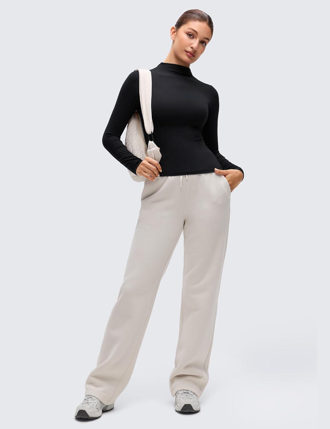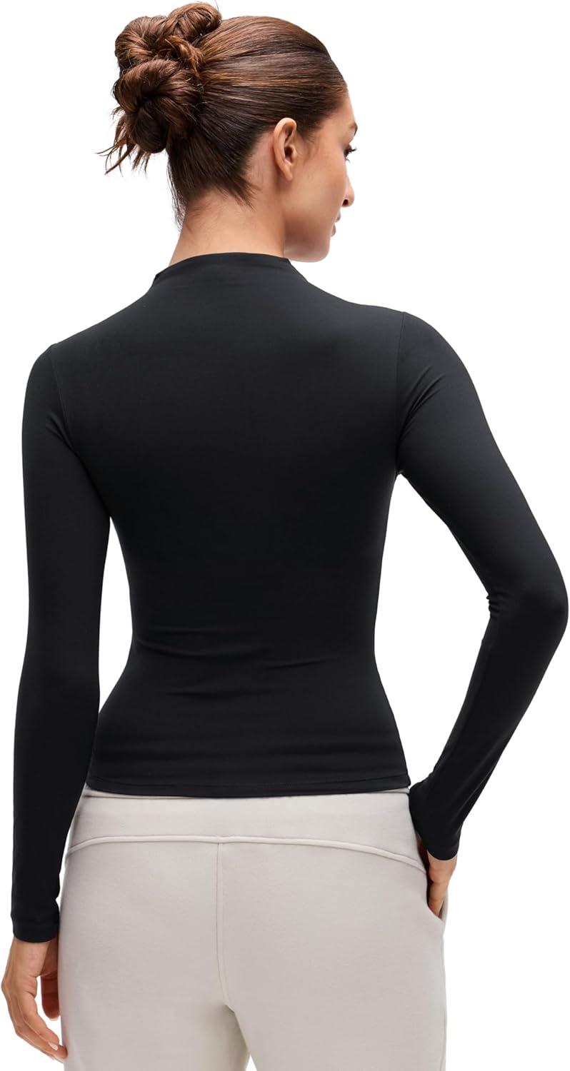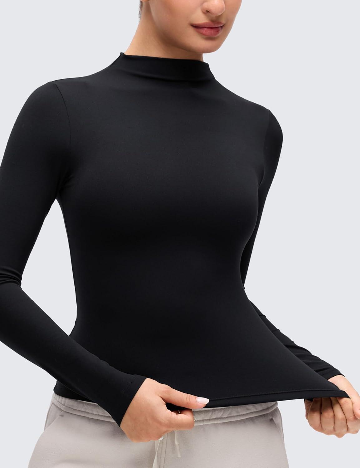 CRZ YOGA Softembrace Mock Neck Long Sleeve Shirts for Women – Casual Going Out Comfort Tops Soft Fitted Layer Underwear Tees(Black)