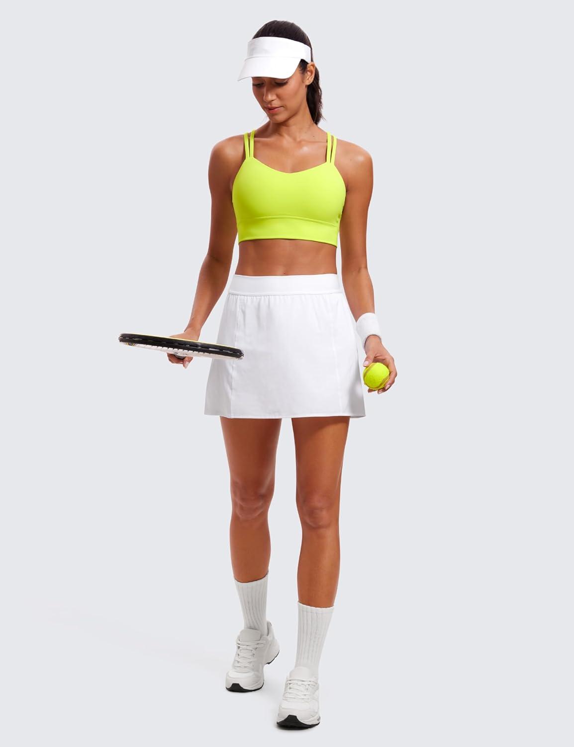 CRZ YOGA Softness Mold Butterluxe Strappy Longline Sports Bras for Women – Double Spaghetti Strap Workout Yoga Crop Top(Neon Yellow)