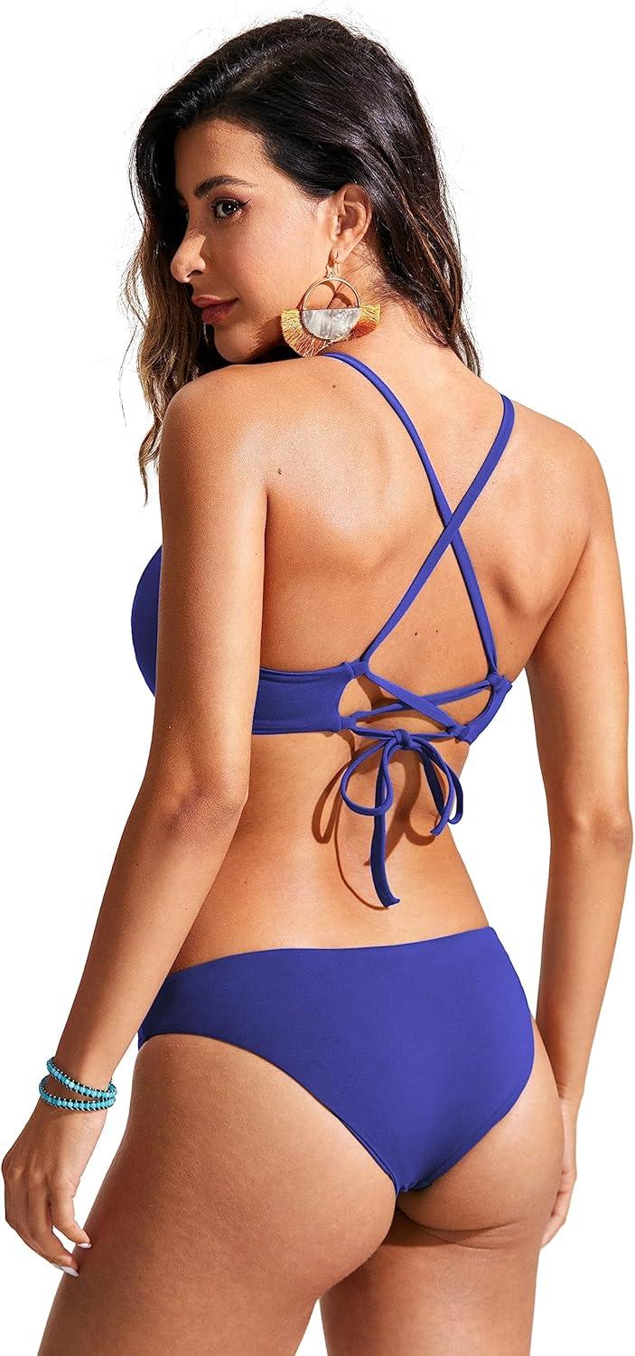 CRZ YOGA Tie Back Bikini Tops for Women – Padded Lace Up V Neck Swim Bathing Suit Bra(Milky Way Purple)