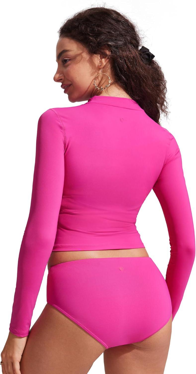 CRZ YOGA UPF 50+ Cropped Rash Guard Shirts for Women – Long Sleeve UV Sun Protection Swim Rashguard Tops(Hibiscus Purple)