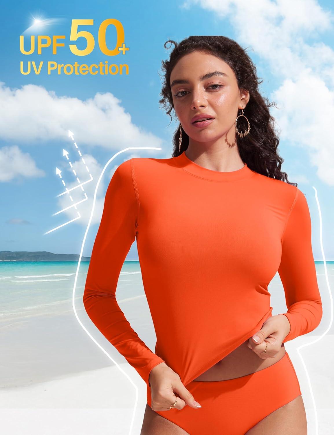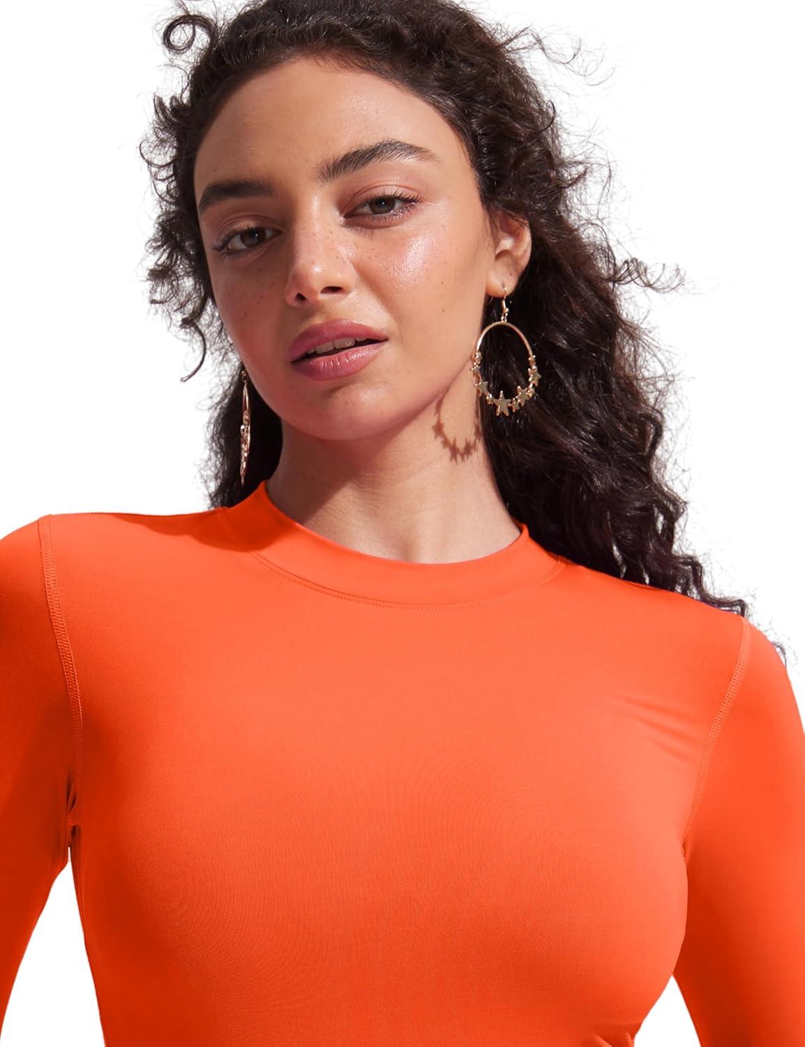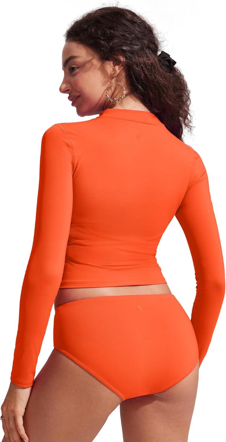 CRZ YOGA UPF 50+ Cropped Rash Guard Shirts for Women – Long Sleeve UV Sun Protection Swim Rashguard Tops(Honey Orange)