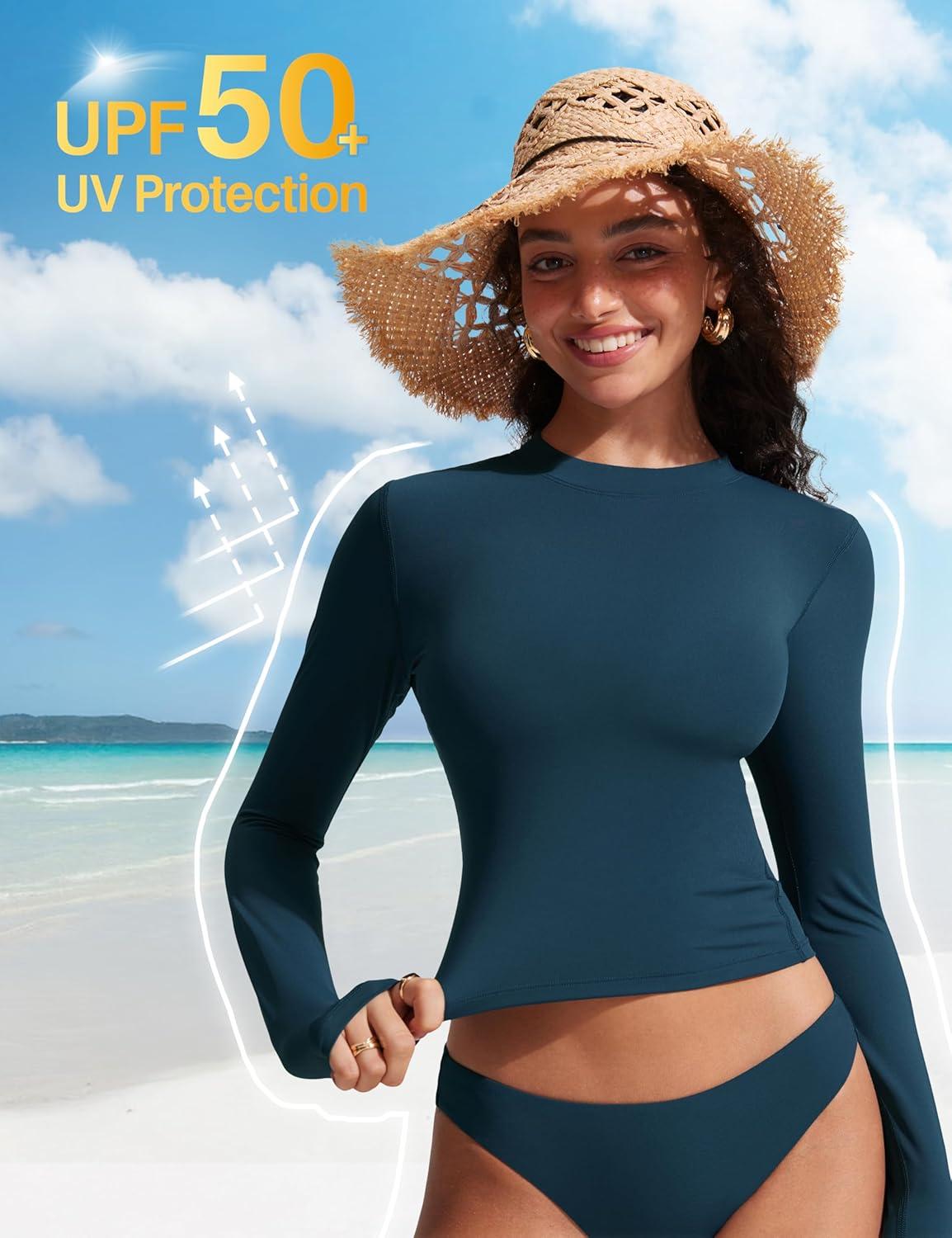 CRZ YOGA Women's sports swimsuits, the fabric is smooth, breathable and quick-dry, bringing you a comfortable sports experience. Cropped rash guard shirts design provide both great sun protection and chic style. Perfectly for swimming, beach, surfing, pool parties and water sports.