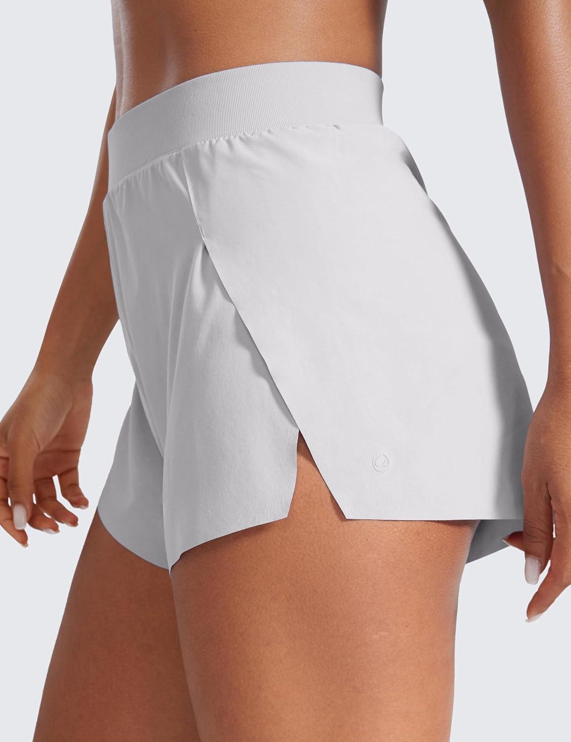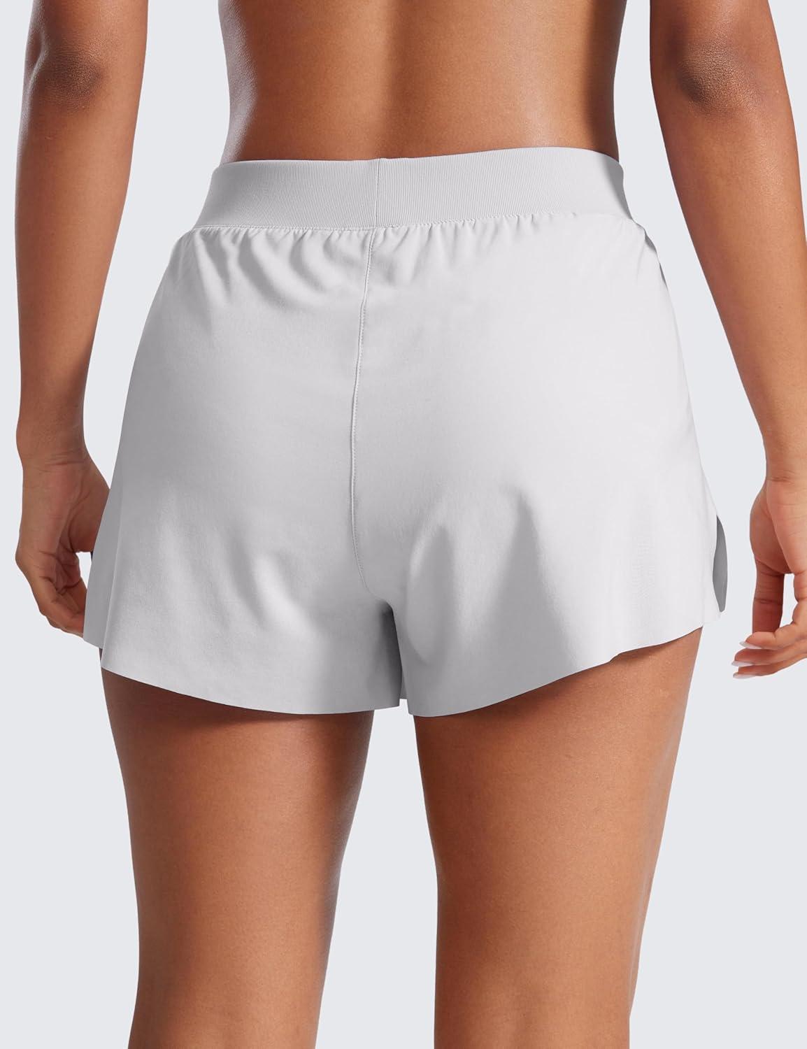 CRZ YOGA V Split Running Shorts for Women 2.5″ – High Waisted Workout Athletic Gym Track with Liner Breathable Quick Dry(Platinum Grey)