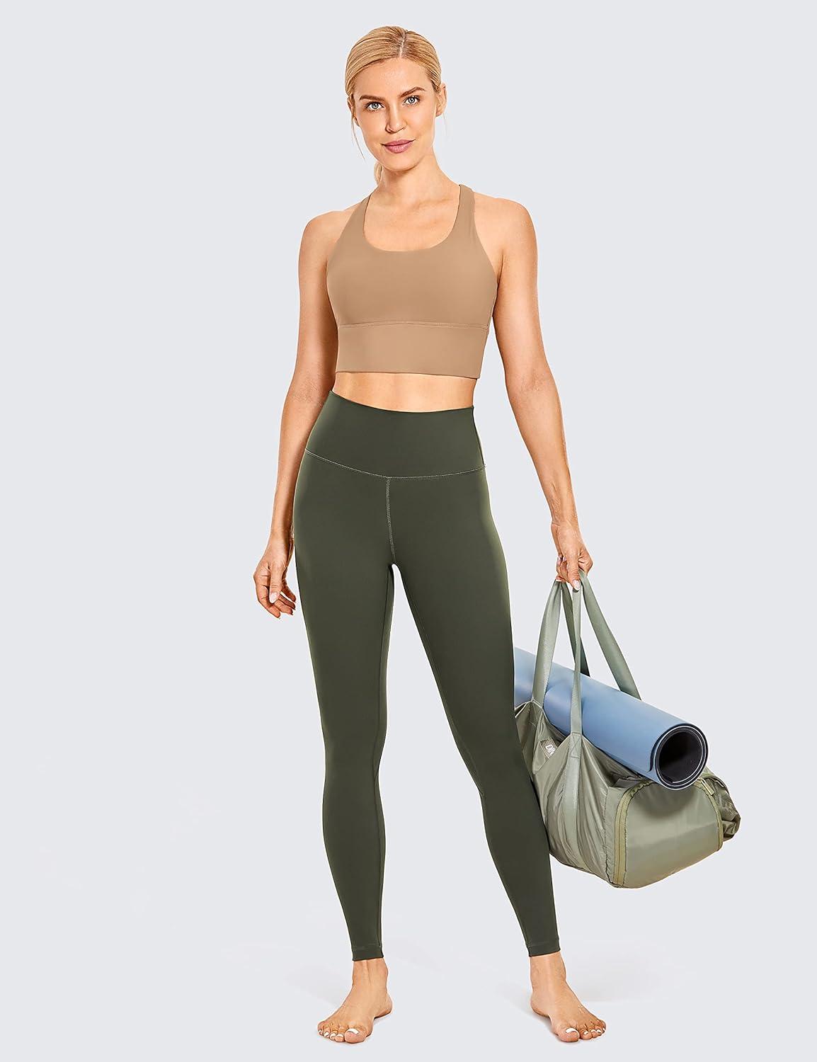 CRZ YOGA Women Naked Feeling Yoga Pants 25 Inches – 7/8 High Waisted Workout Leggings(Dark Olive)