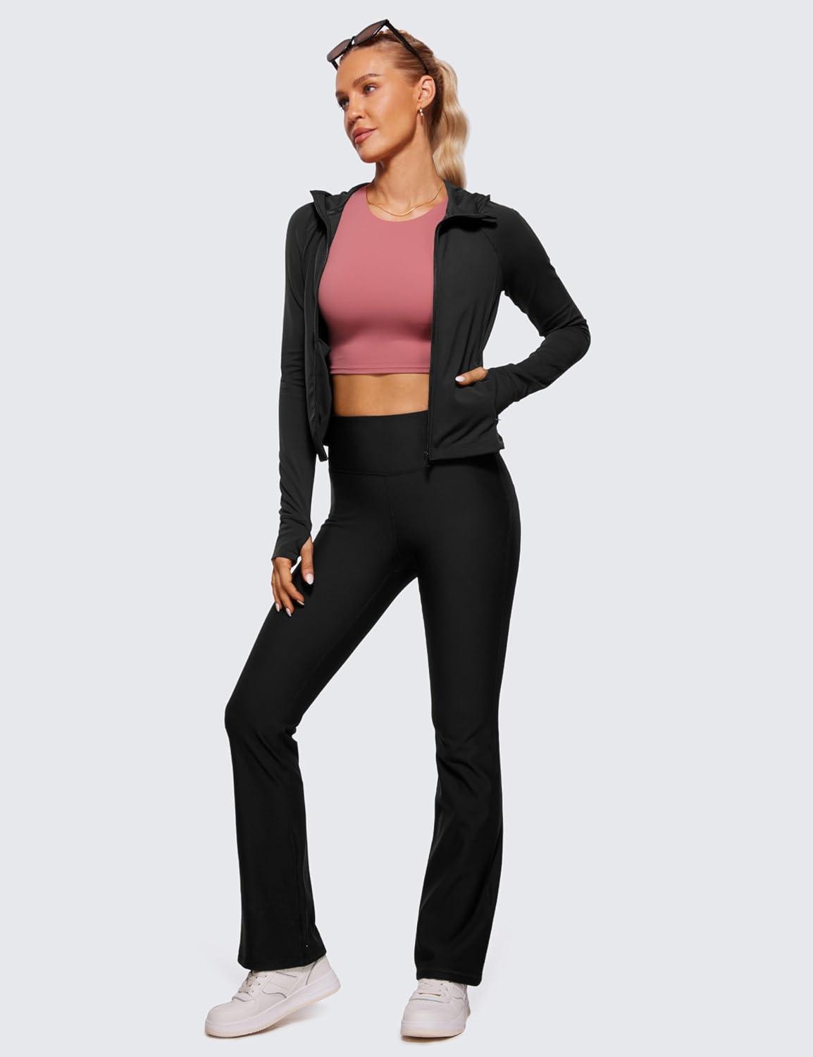 CRZ YOGA Womens Butterluxe Full Zip Workout Hoodie Jackets Slim Fit Hooded Athletic Yoga Lightweight Jacket with Thumb Holes(Black)