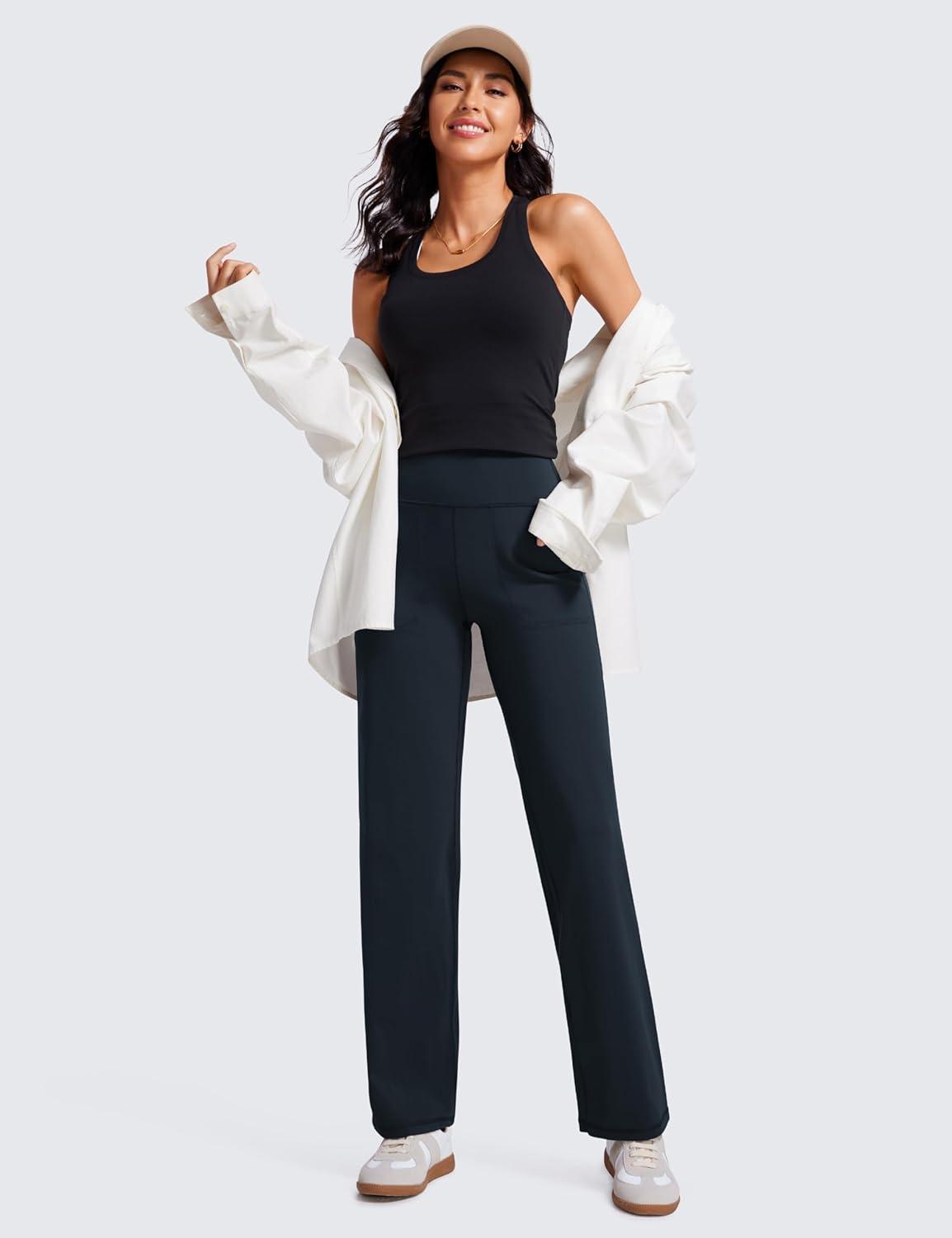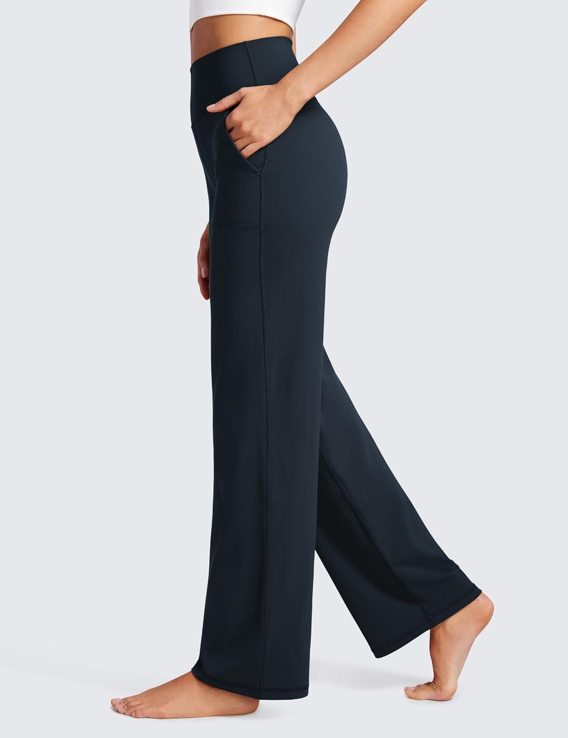 CRZ YOGA Womens Butterluxe High Waist Wide Leg Pants with Pockets 31″ – Buttery Soft Comfy Casual Yoga Lounge(True Navy)
