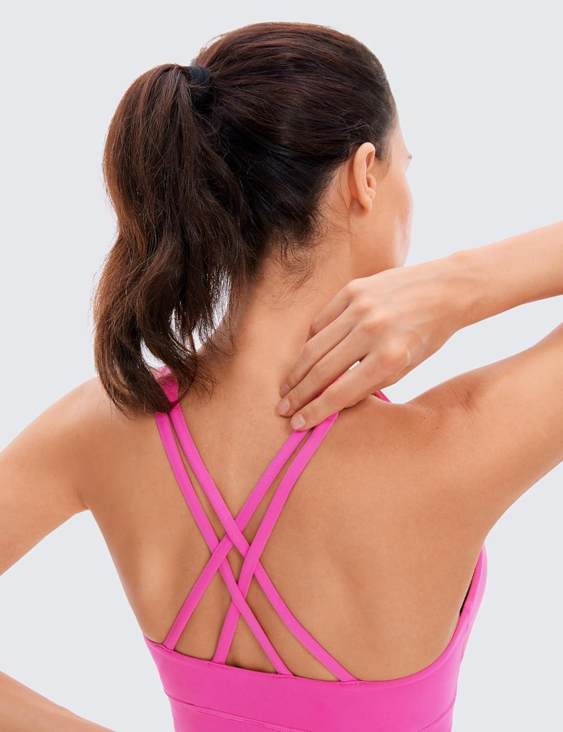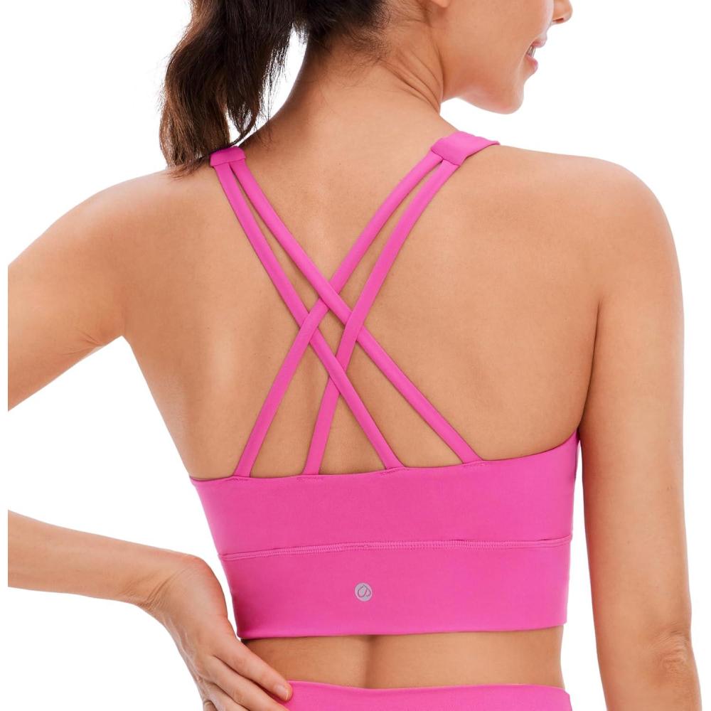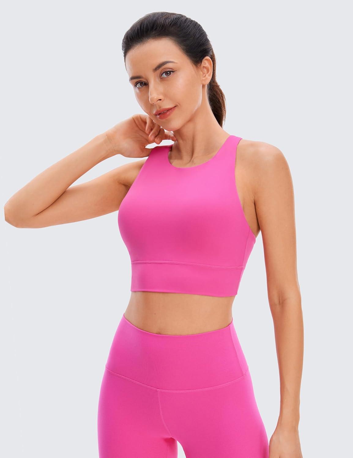 CRZ YOGA Womens Butterluxe Strappy High Neck Longline Sports Bra – Wireless Criss Cross Back Padded Workout Cropped Top((Neon)light Purple)