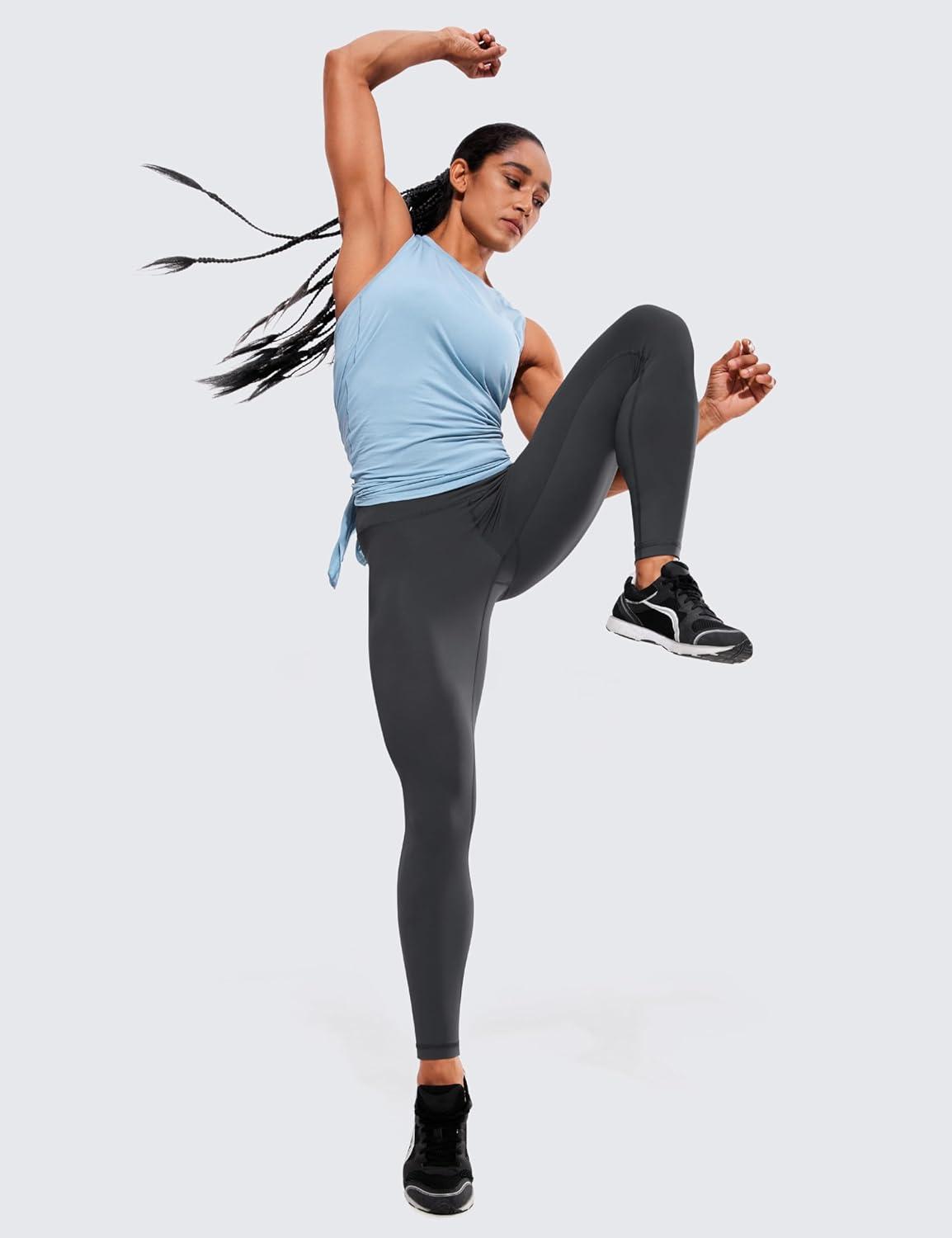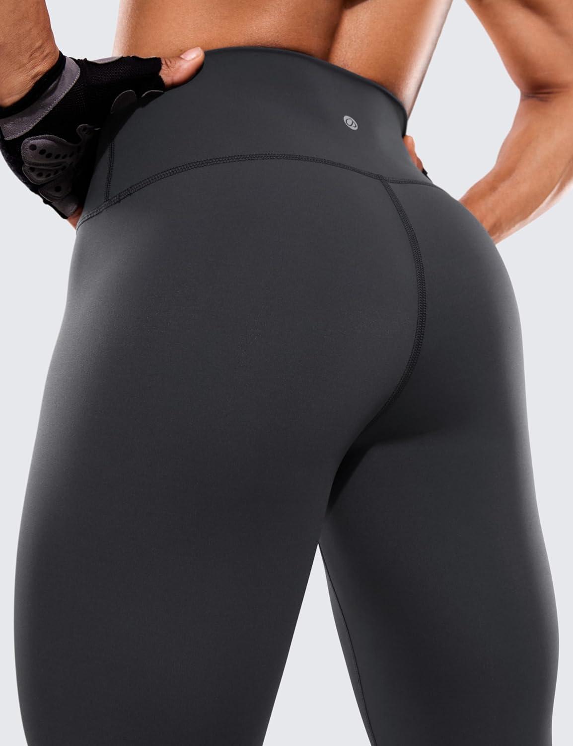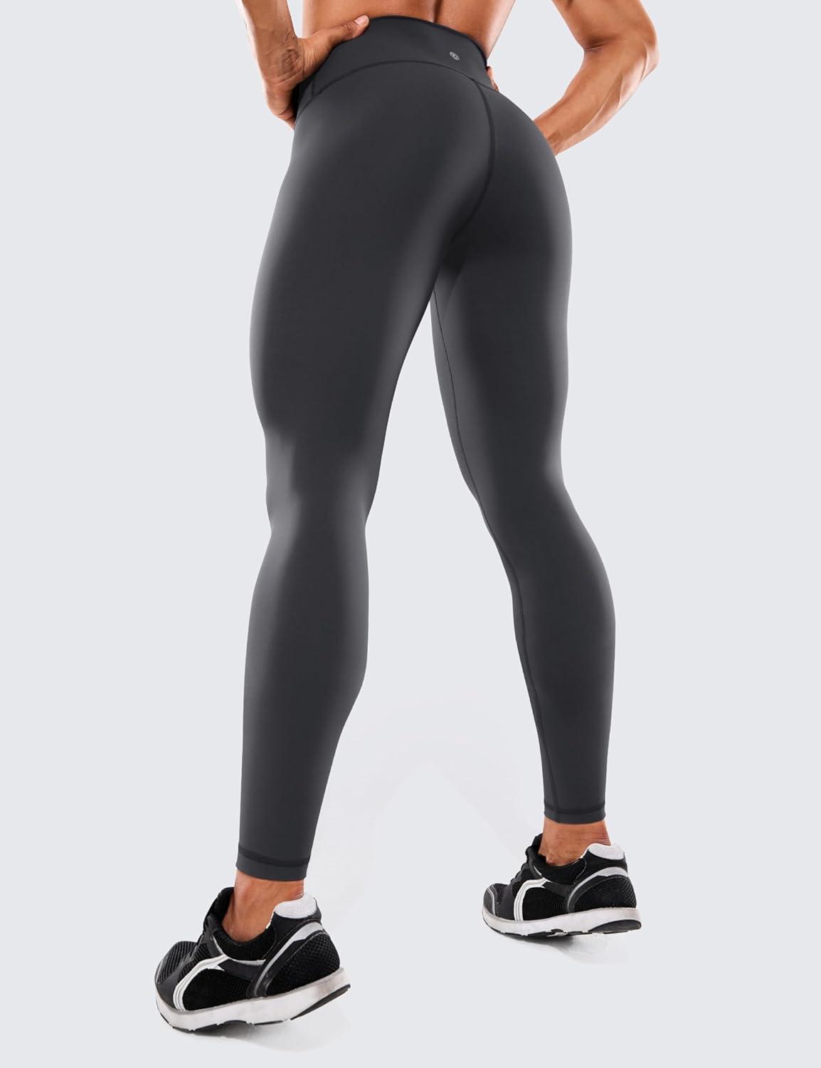 CRZ YOGA Women’s Hugged Feeling Compression Leggings 28 Inches – High Waist Thick Tummy Control Workout Pants(Ink Gray)