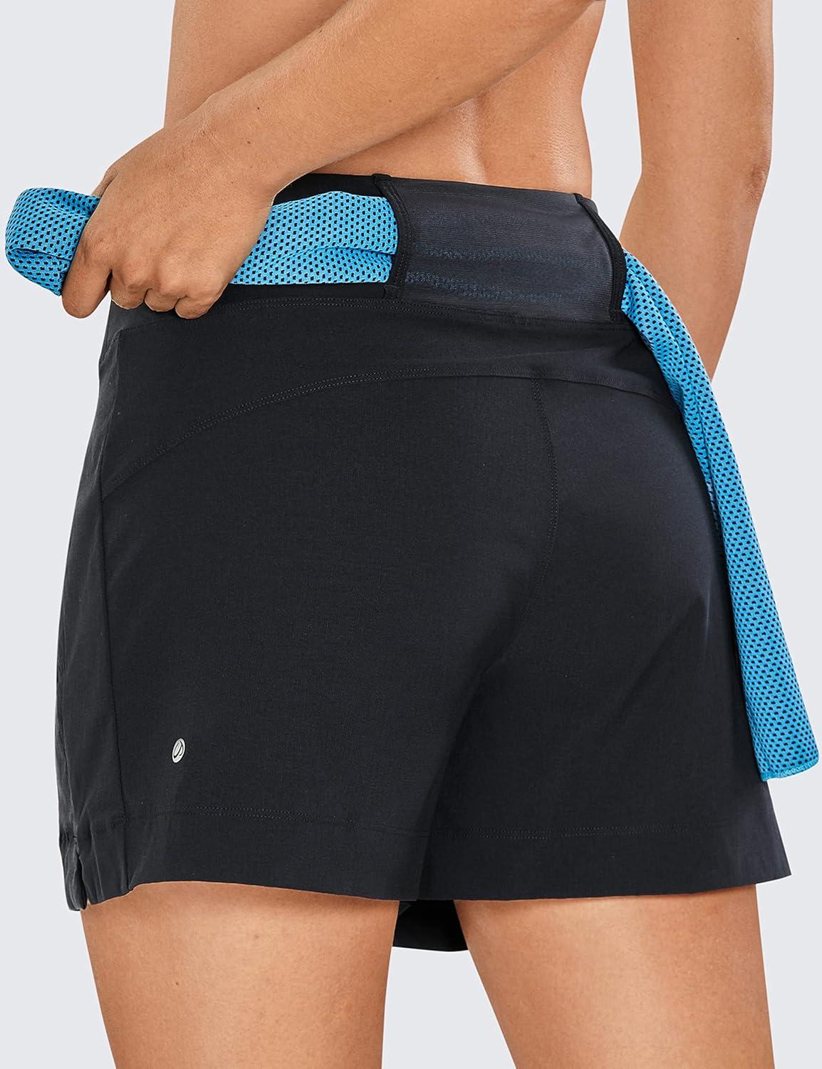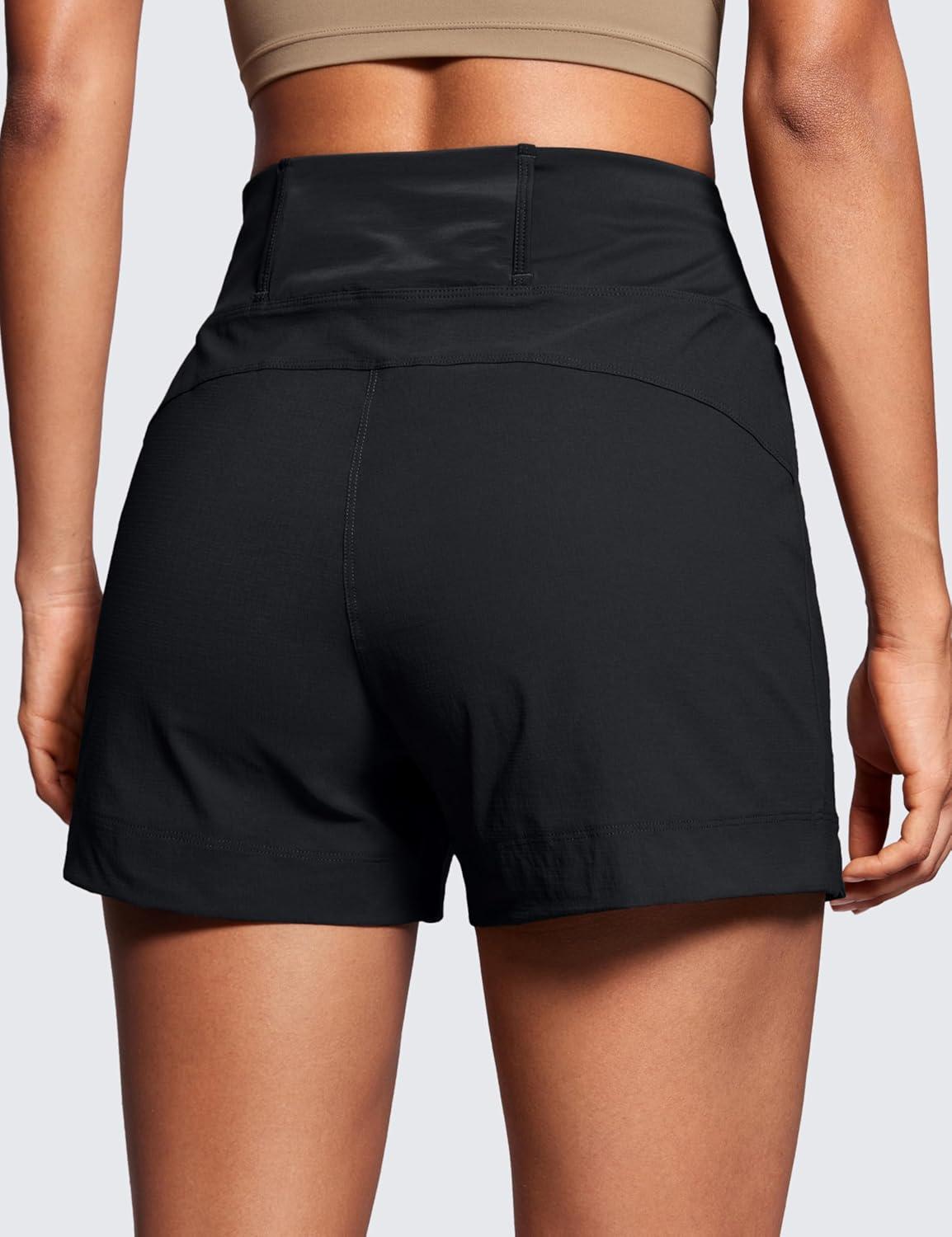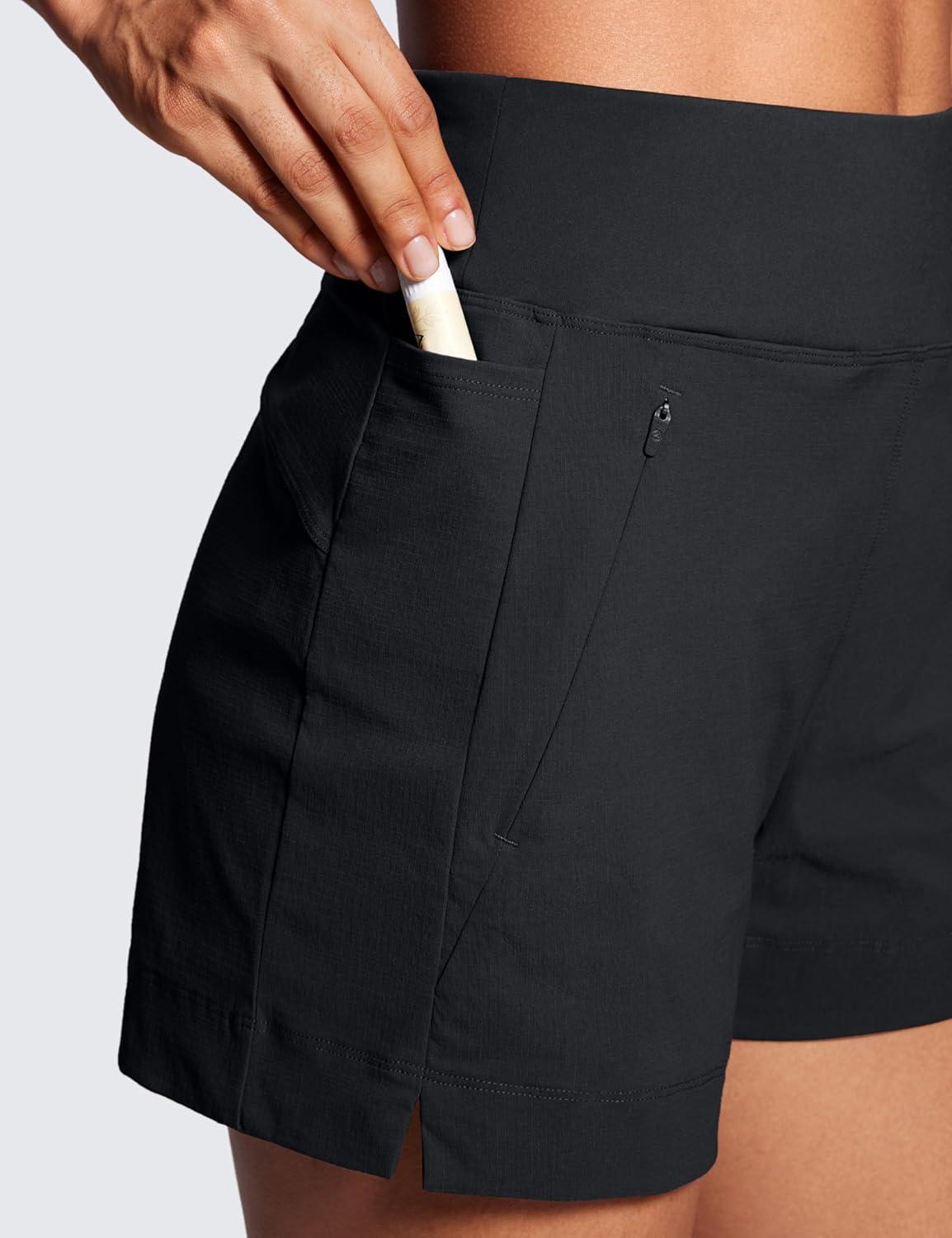 CRZ YOGA Women’s Lightweight Mid Rise Hiking Shorts 4” – Stretch for Athletic Summer Travel Outdoor Golf with Zip Pockets(Black)