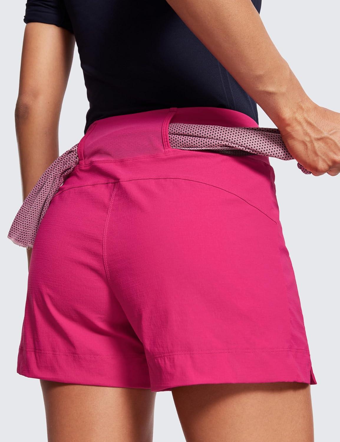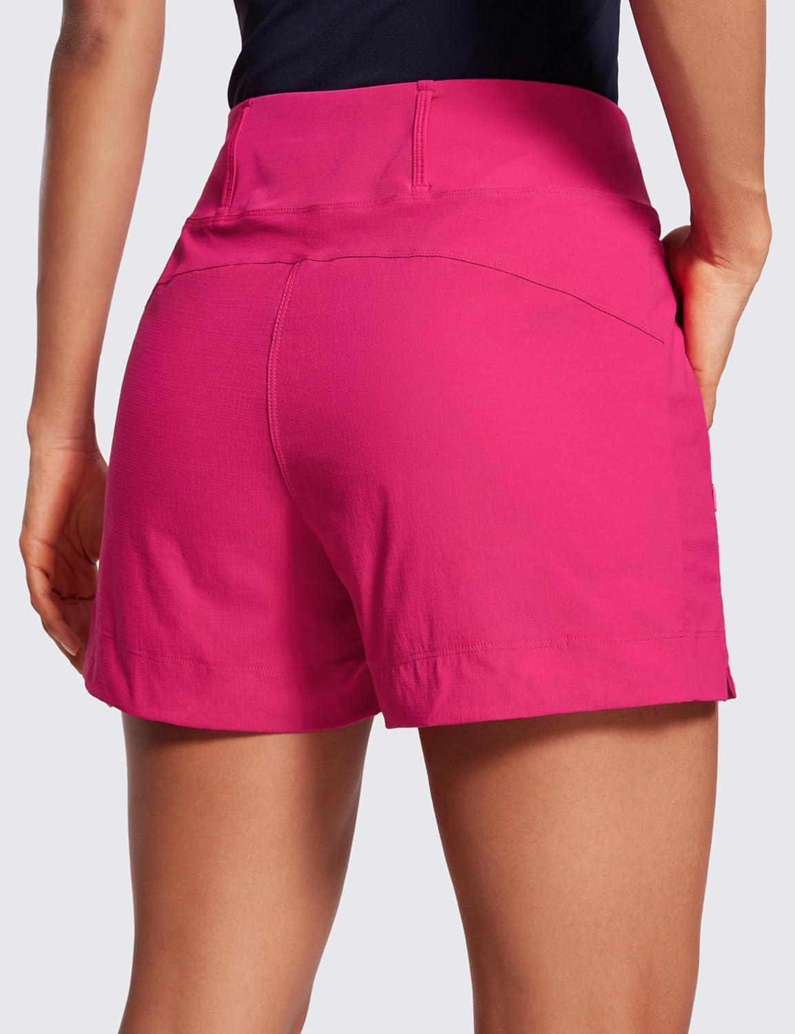 CRZ YOGA Women’s Lightweight Mid Rise Hiking Shorts 4” – Stretch for Athletic Summer Travel Outdoor Golf with Zip Pockets(Granita Pink)