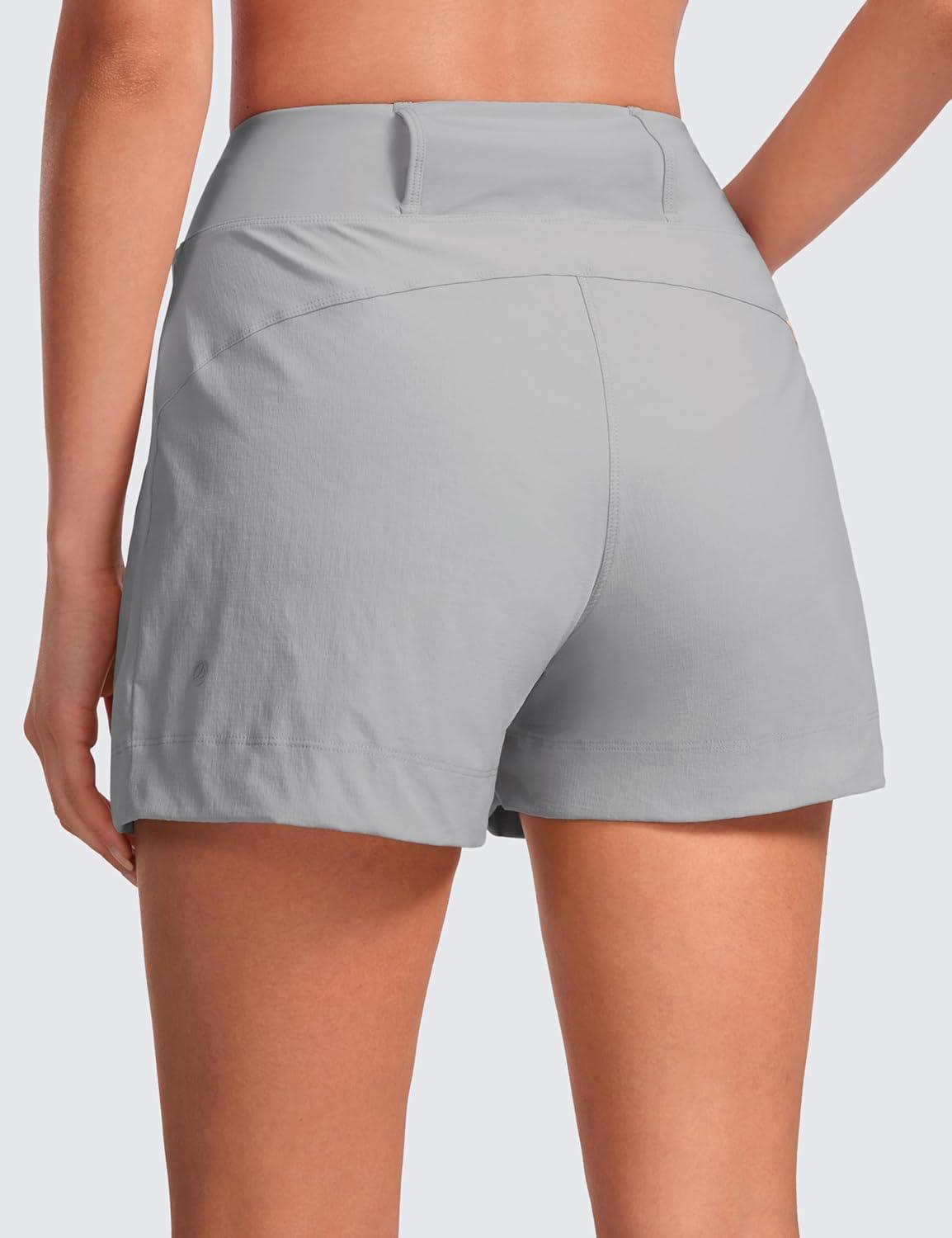 CRZ YOGA Women’s Lightweight Mid Rise Hiking Shorts 4” – Stretch for Athletic Summer Travel Outdoor Golf with Zip Pockets(Rhino Grey)