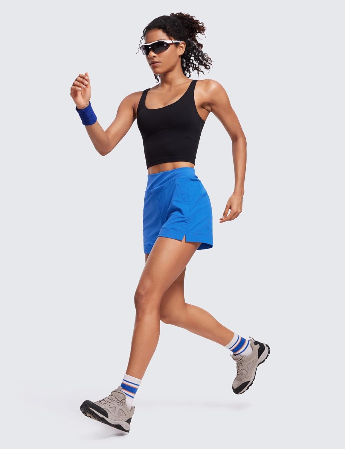 CRZ YOGA Women’s Lightweight Mid Rise Hiking Shorts 4” – Stretch for Athletic Summer Travel Outdoor Golf with Zip Pockets(Sparkle Blue)