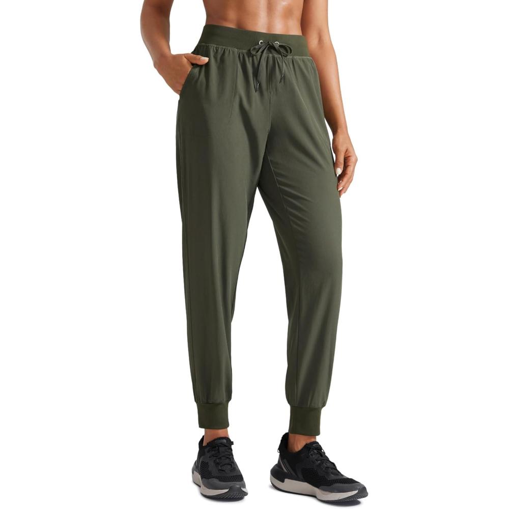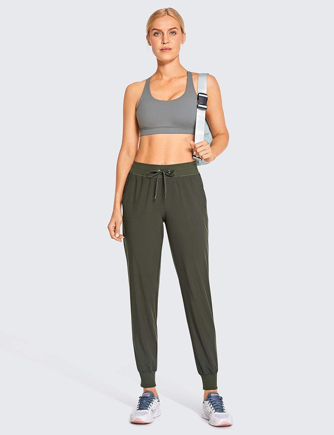 CRZ YOGA Women’s Lightweight Workout Joggers 27.5″ – Travel Casual Outdoor Running Athletic Track Hiking Pants with Pockets(Dark Olive)