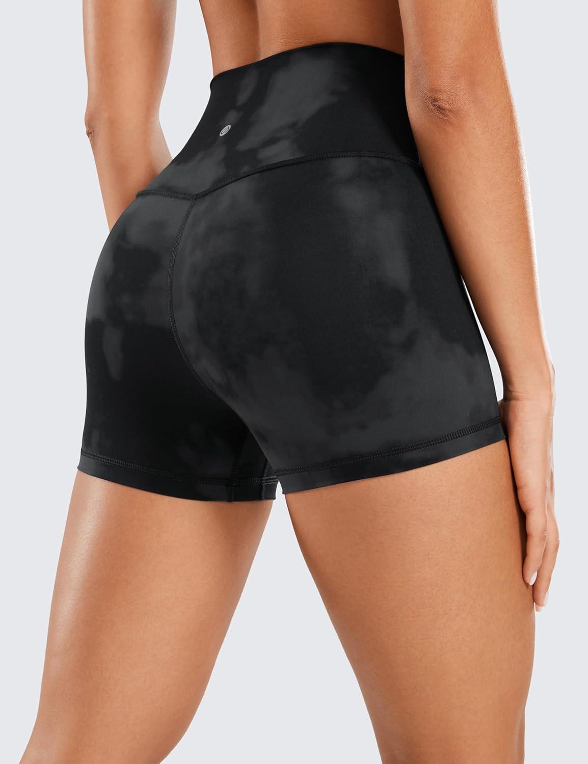 CRZ YOGA Women’s Naked Feeling Biker Shorts – 3 Inches High Waisted Yoga Workout Running Spandex(Black Tie Dye Flowers)