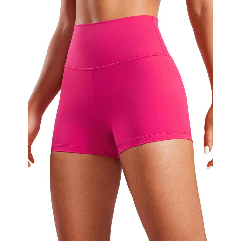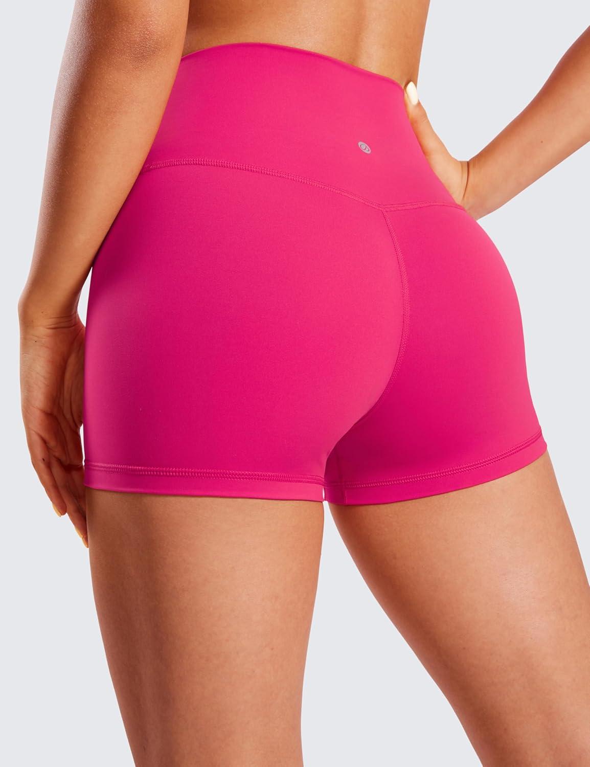 CRZ YOGA Women’s Naked Feeling Biker Shorts – 3 Inches High Waisted Yoga Workout Running Spandex(Granita Pink)