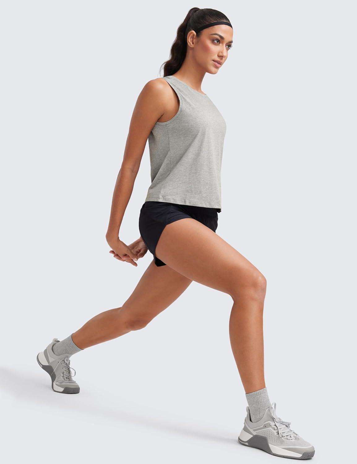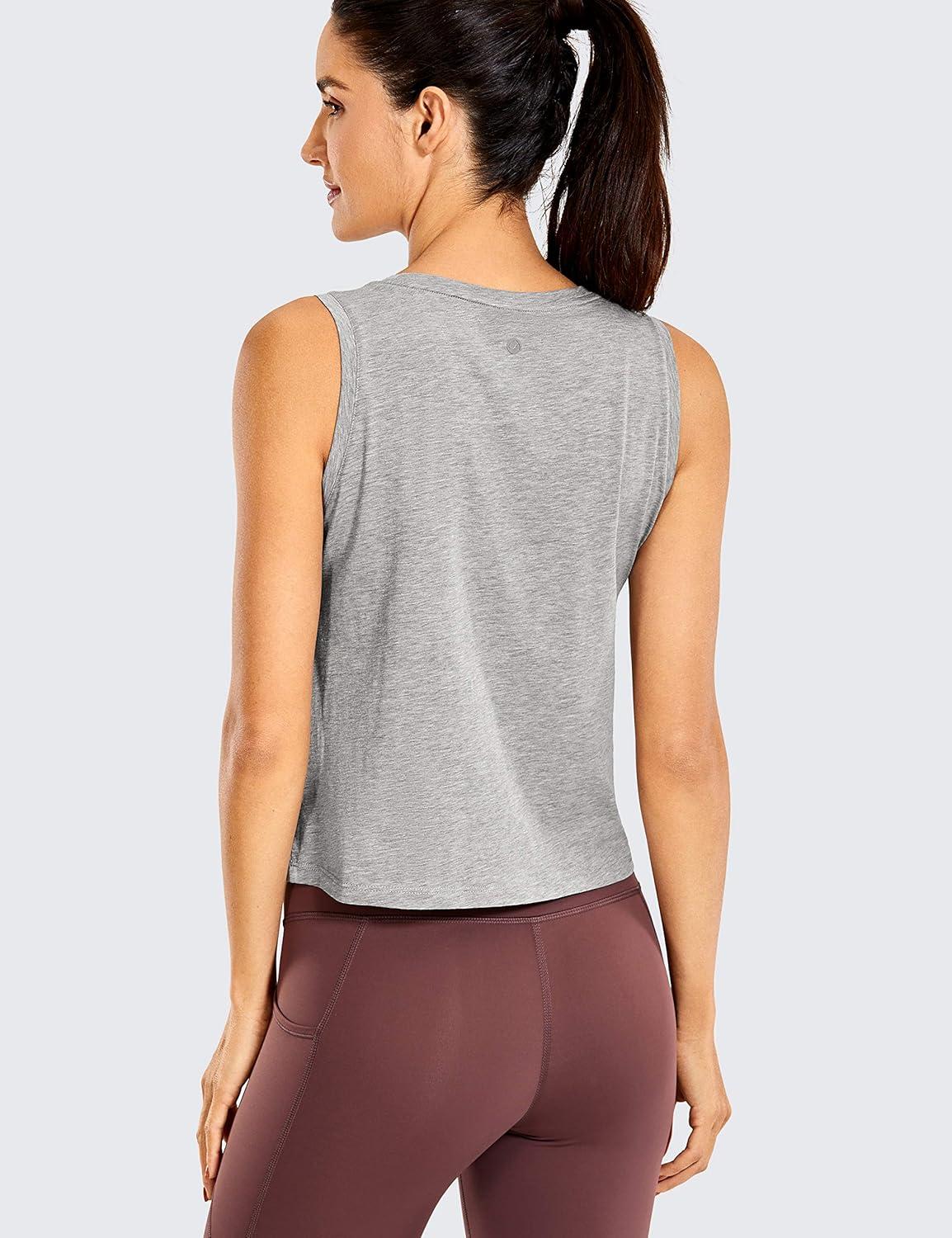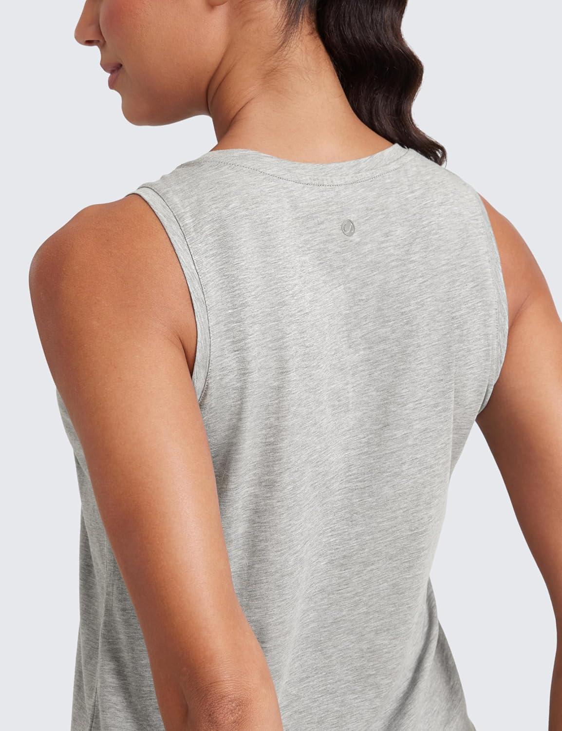 CRZ YOGA Women’s Pima Cotton Sleeveless Loose Tank Tops Exercise Gym Yoga Tops Athletic Shirts(Heathered Medium Grey)