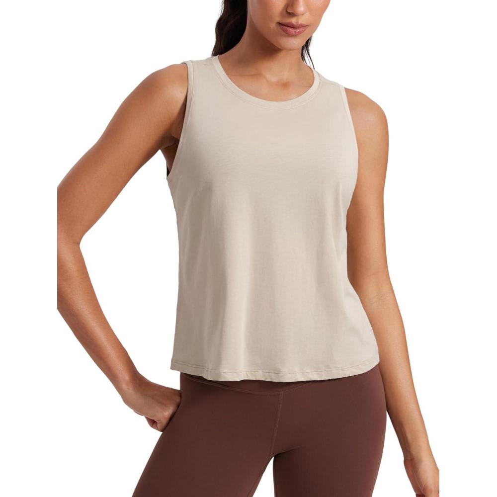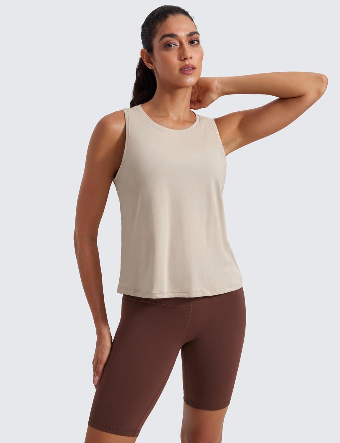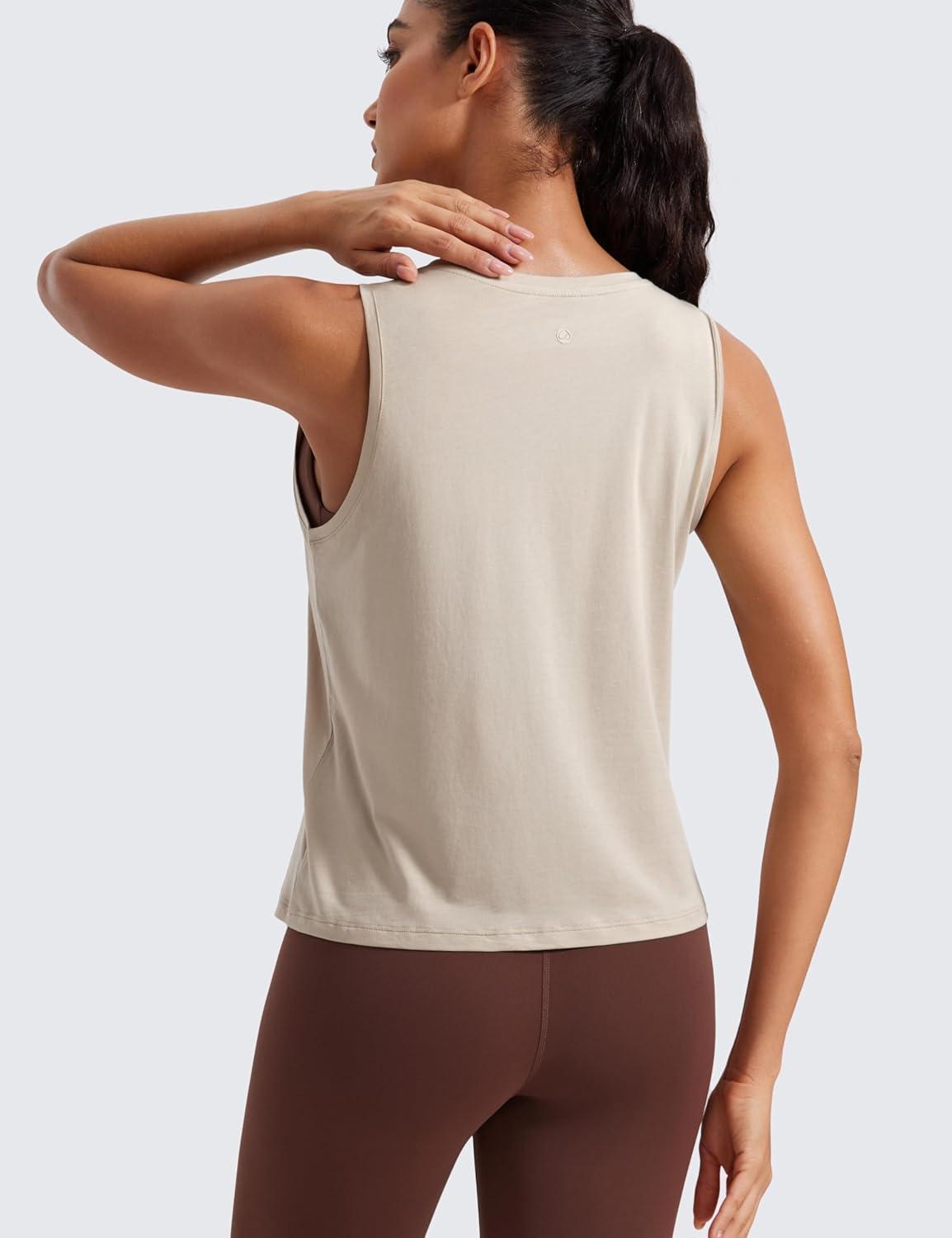 CRZ YOGA Women’s Pima Cotton Sleeveless Loose Tank Tops Exercise Gym Yoga Tops Athletic Shirts(Mojave Tan)