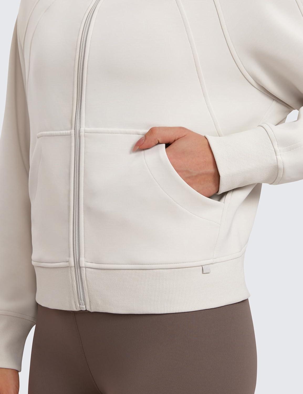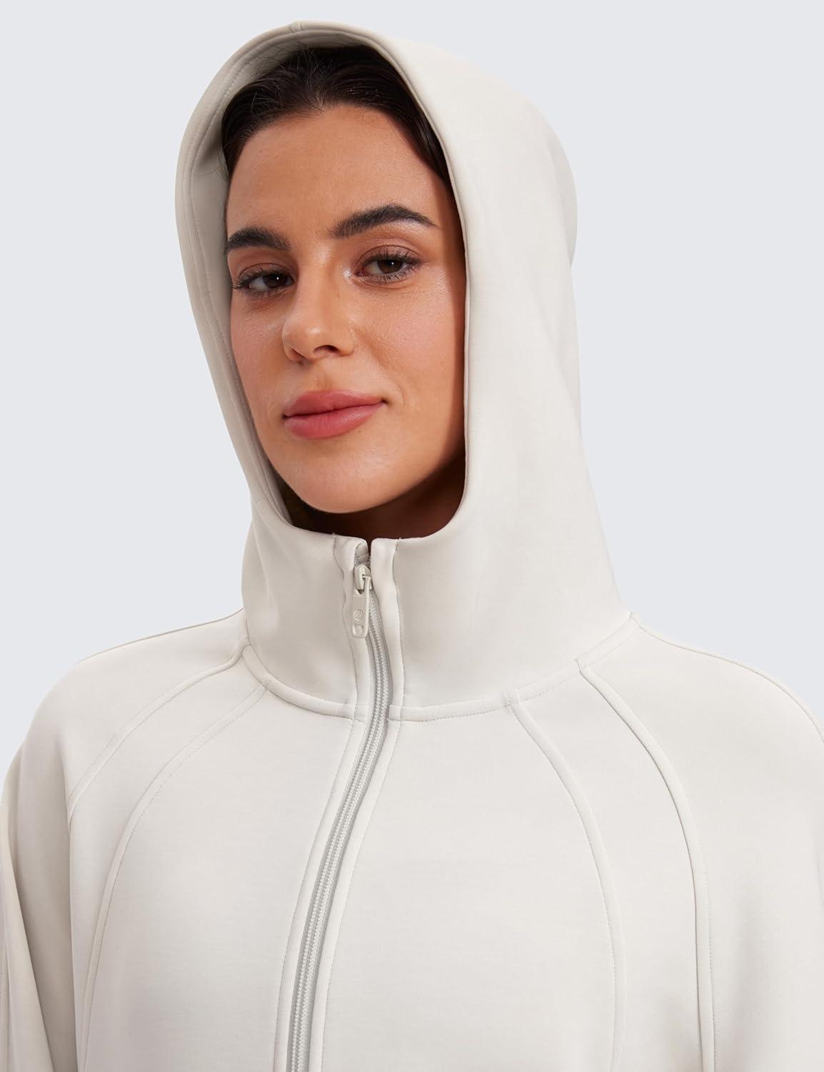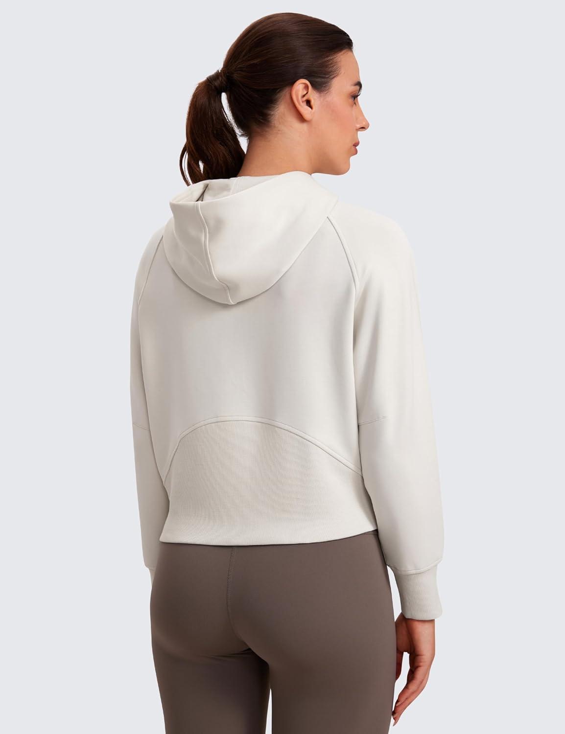 CRZ YOGA Womens SoftAura Full Zip Up Hoodie Workout Casual Hooded Sweatshirt Long Sleeve Athletic Jacket(Milky White (Bone))