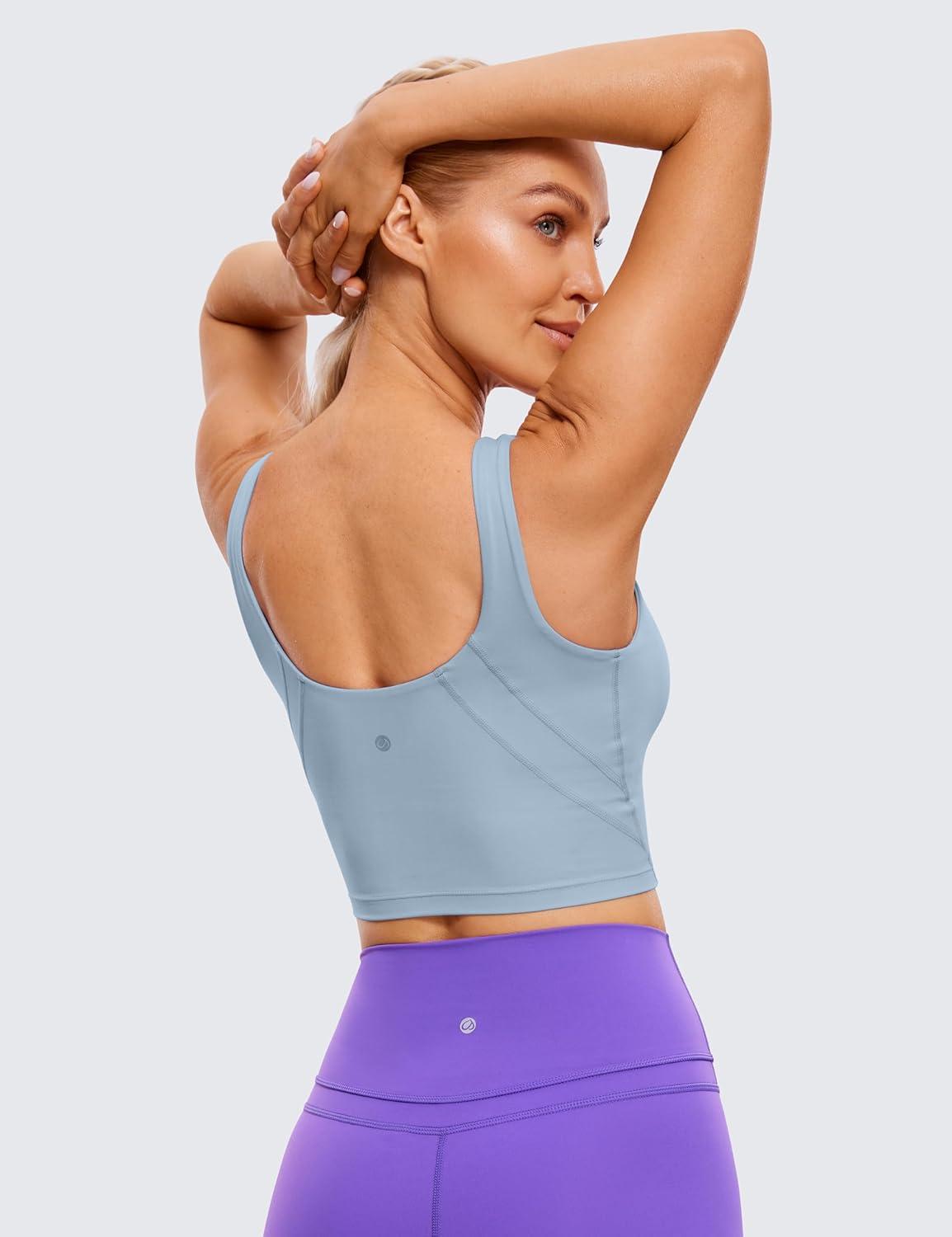 CRZ YOGA Womens U Back Sports Bras Padded High Neck Crop Workout Tank Tops(Cambric Blue)
