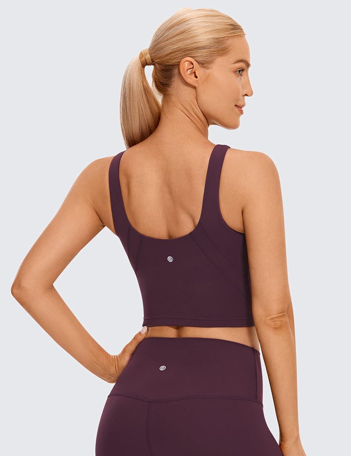 CRZ YOGA Womens U Back Sports Bras Padded High Neck Crop Workout Tank Tops(Deep Purple)