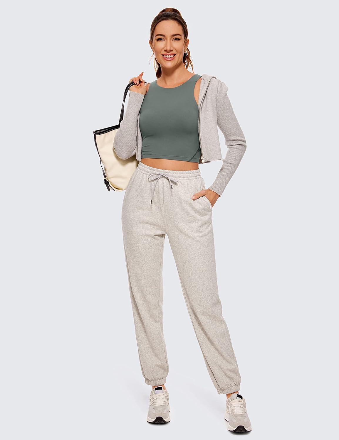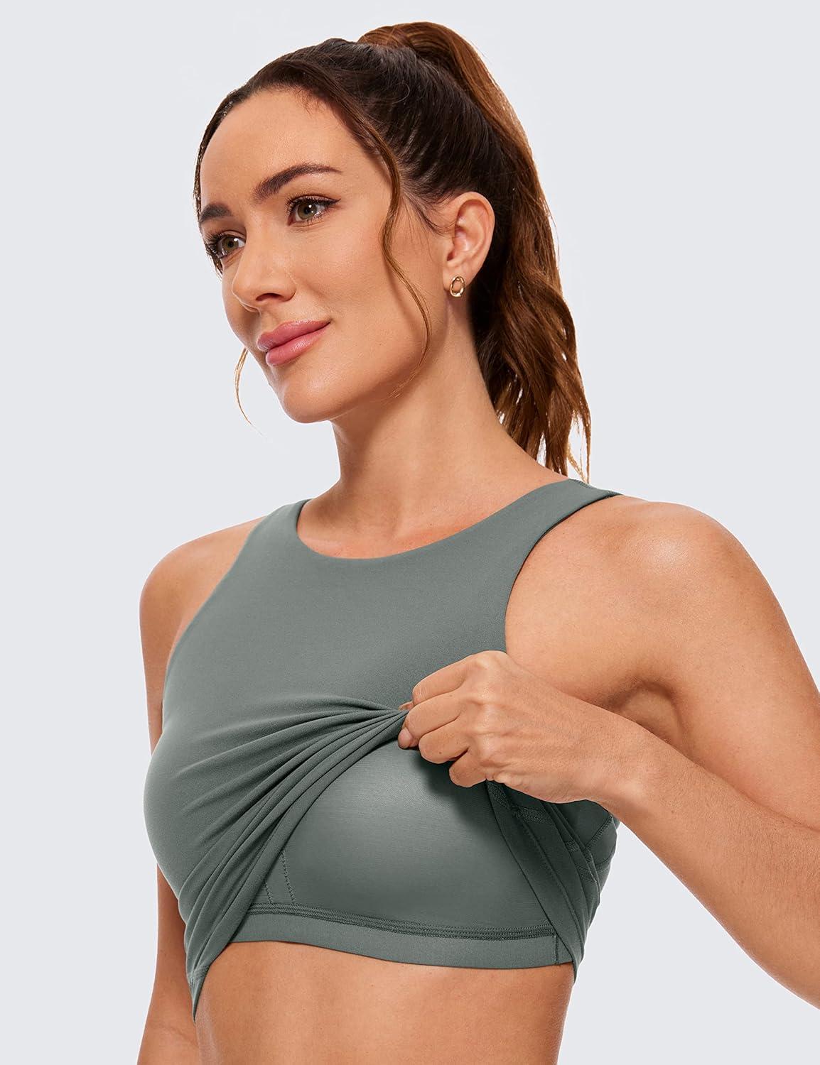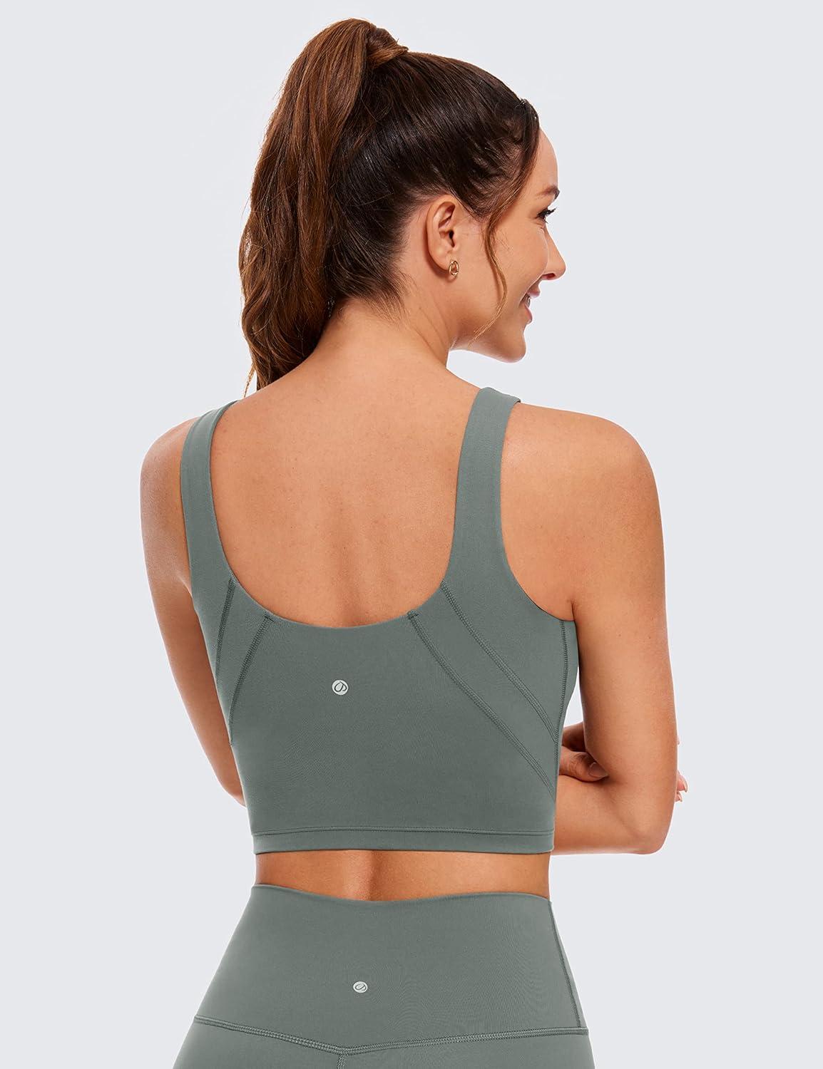 CRZ YOGA Womens U Back Sports Bras Padded High Neck Crop Workout Tank Tops(Grey Sage)