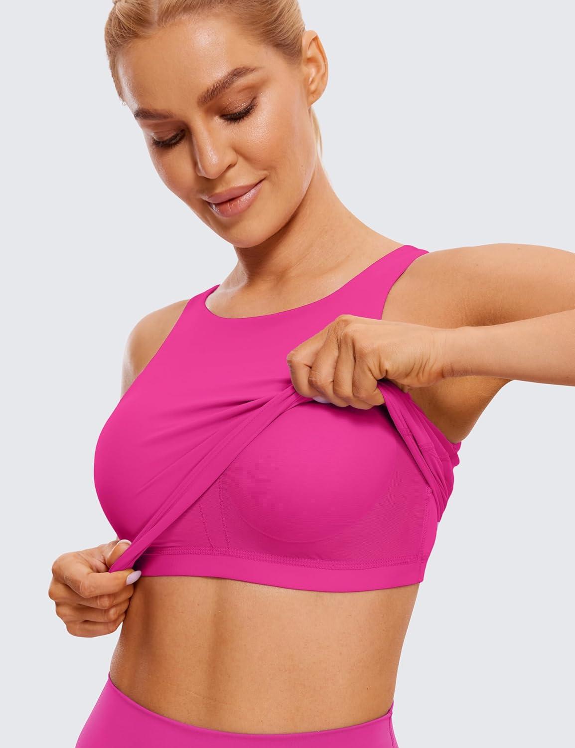 CRZ YOGA Womens U Back Sports Bras Padded High Neck Crop Workout Tank Tops(Hibiscus Purple)