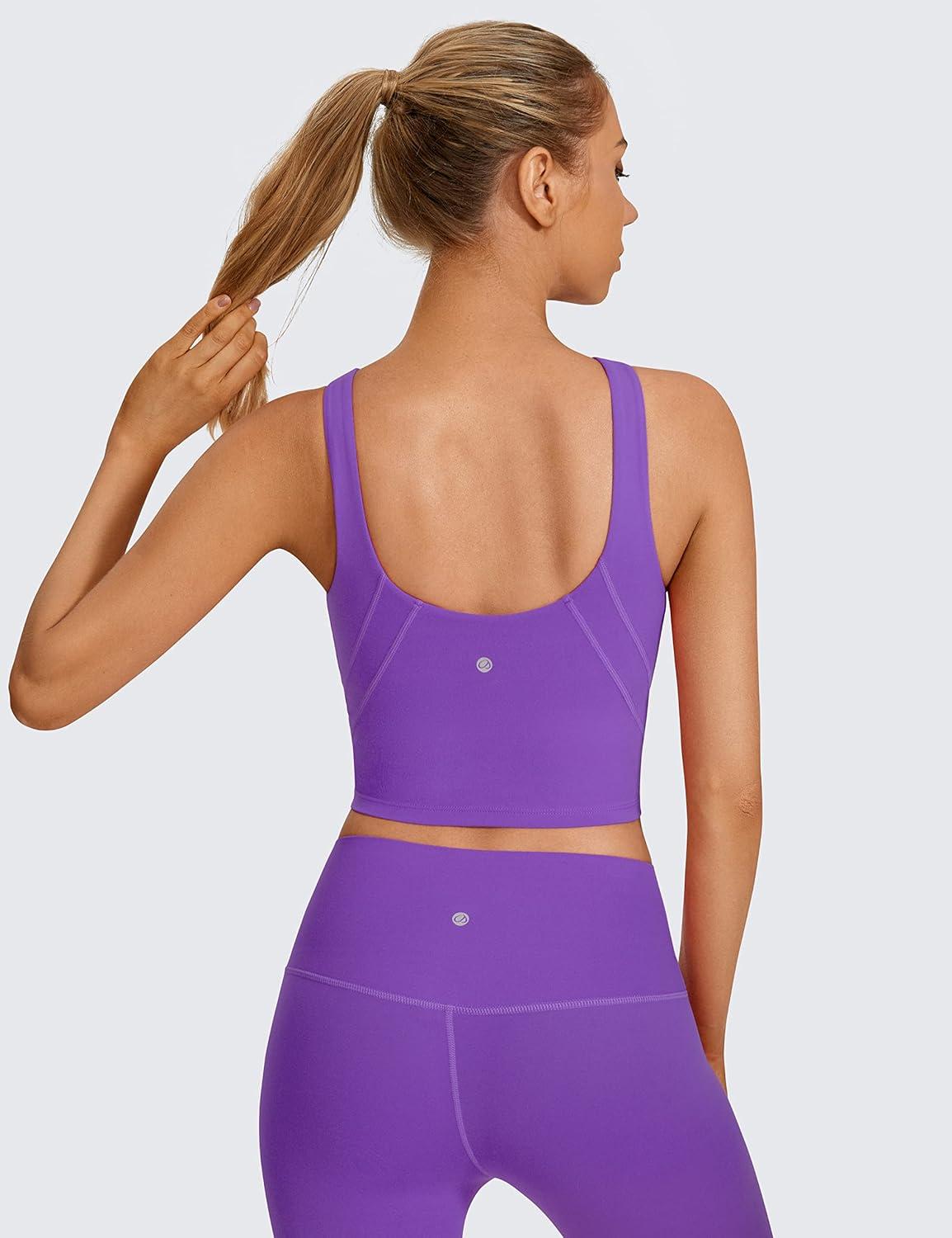 CRZ YOGA Womens U Back Sports Bras Padded High Neck Crop Workout Tank Tops(Royal Lilac)