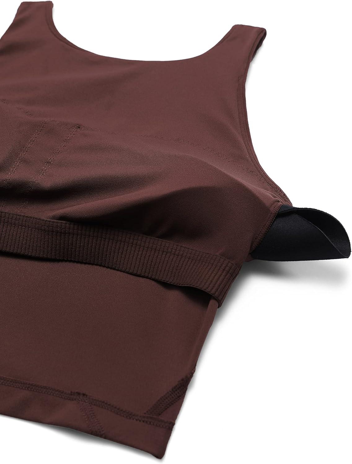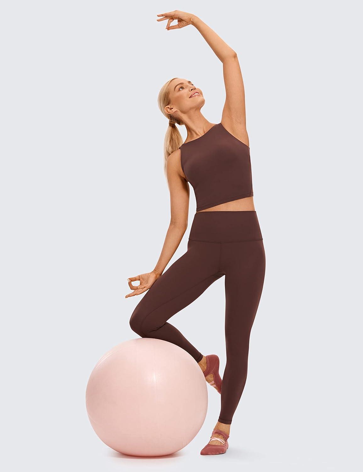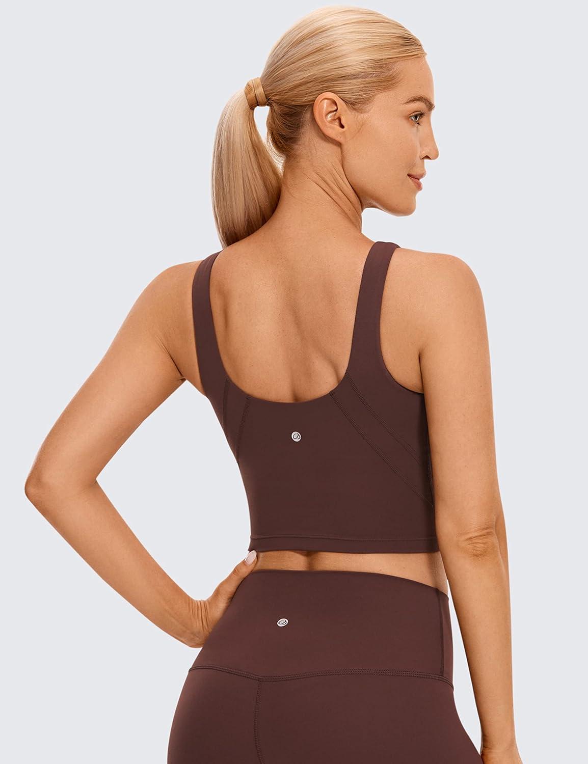 CRZ YOGA Womens U Back Sports Bras Padded High Neck Crop Workout Tank Tops(Taupe)